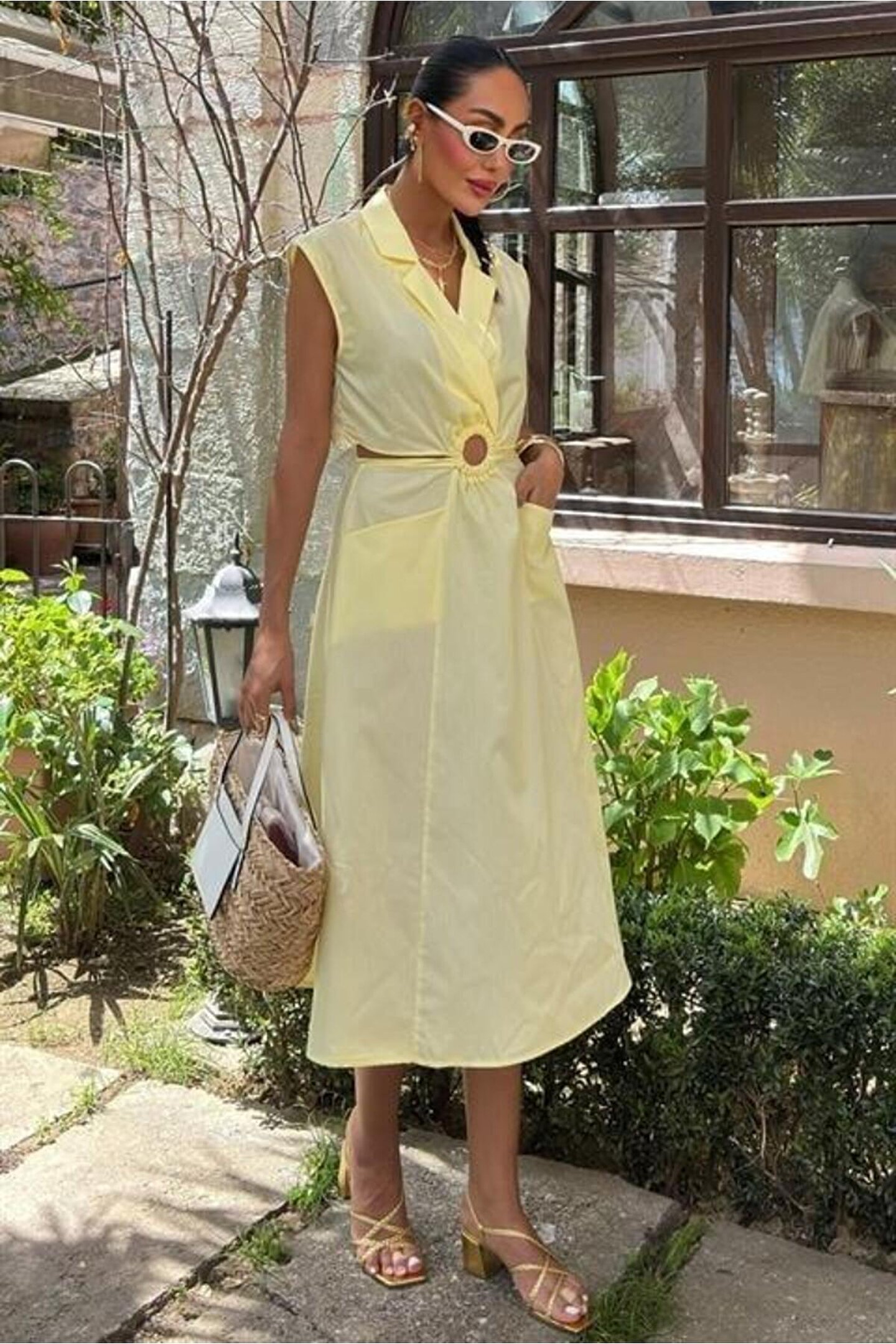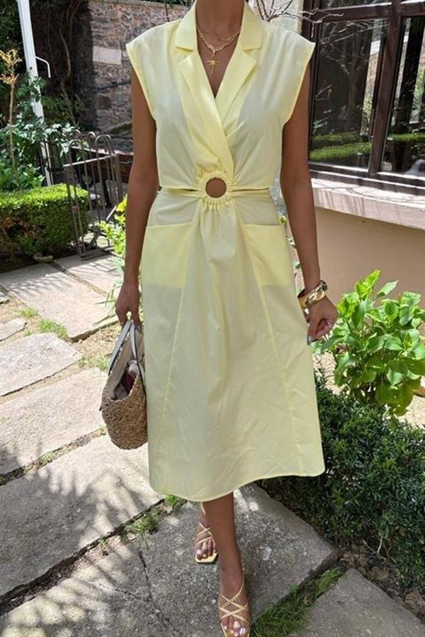 Lijuri Göbeği Halka Detaylı Midi Boy Elbise 2896