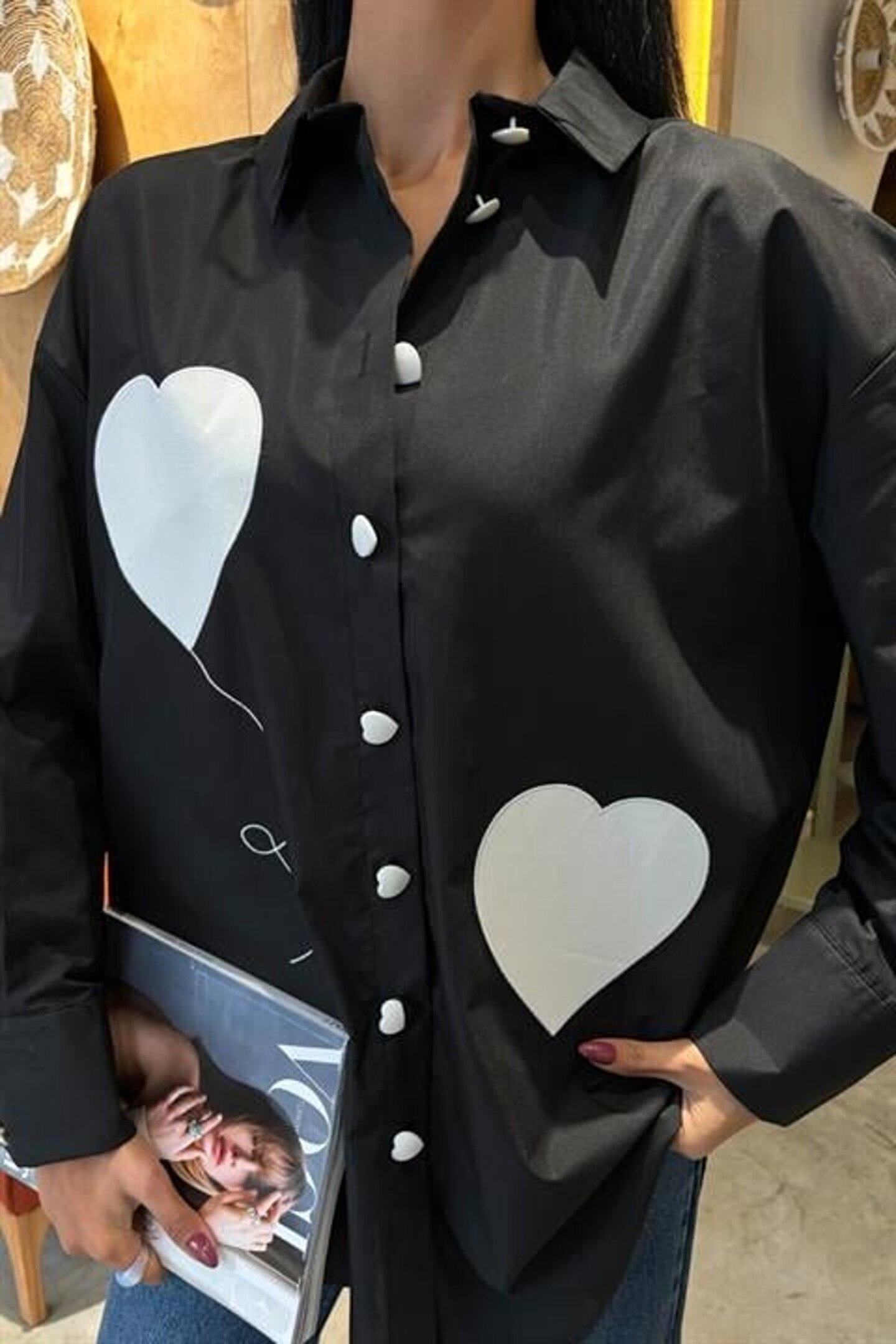 Lijuri MODAVERA Kalp Nakışlı Ve Düğme Detaylı Oversize Gömlek 3430