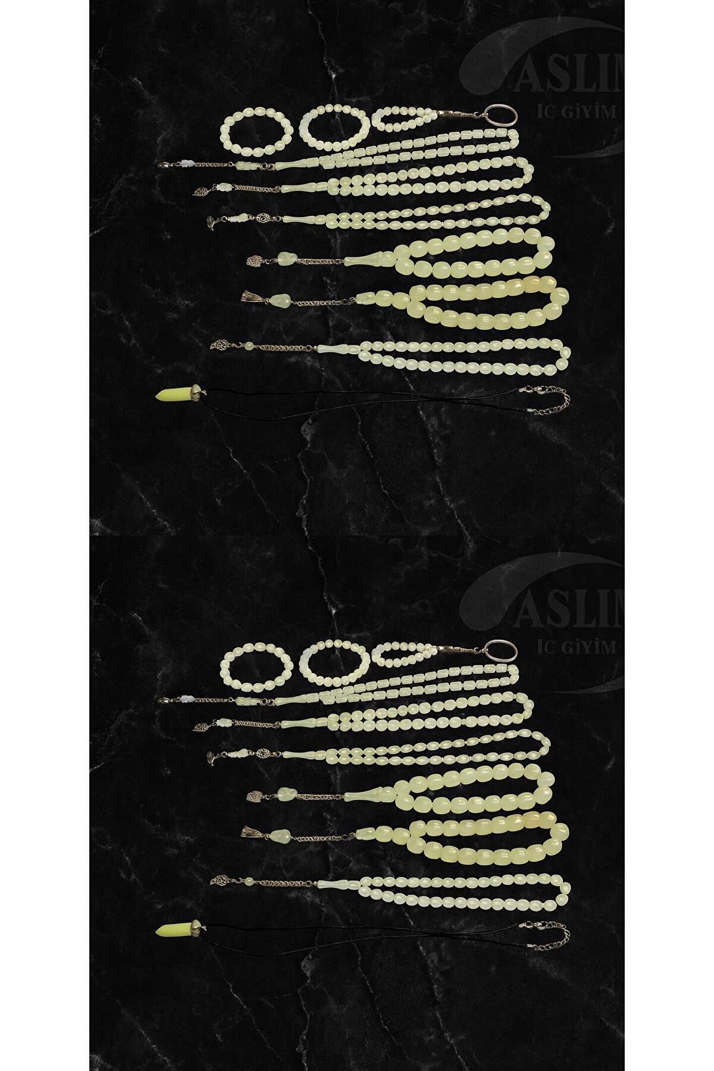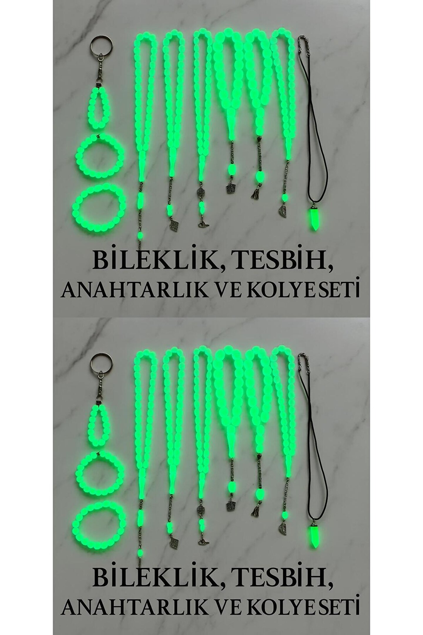 Fosforlu Kedigözü 20'li Set – Tesbih, Kolye, Bileklik ve Anahtarlık ✨ Karanlıkta Parlayan, Şık ve Özel Tasarım Hediye Seti ✨ Ürün İçeriği Bu özel set, zarif işçiliği ve fosforlu kedigözü taşlarının büyüleyici parıltısıyla hazırlanmıştır.; Akrilik monomerden üretilen taşlar, gündüz ışığında zarif bir parlaklık, karanlıkta ise göz alıcı bir ışıltı sunar.; Toplam 20 parçadan oluşan setin içeriği: Tesbihler (12 Adet) 4 Adet Efe Boy Tesbih (2 Küre Kesim, 2 Kapsül Kesim) 2 Adet Arpa Kesim Tesbih 2 Adet Damla Kesim Tesbih 2 Adet Kapsül Kesim Tesbih 2 Adet Beyzi Kesim Tesbih Takı ve Aksesuarlar (8 Adet) 2 Adet Kolye 2 Adet Arpa Kesim Bileklik 2 Adet Küre Kesim Bileklik 2 Adet Anahtarlık Toplamda 20 şık parça, hem kişisel kullanım hem de sevdiklerinize hediye için ideal.; Öne Çıkan Özellikler
