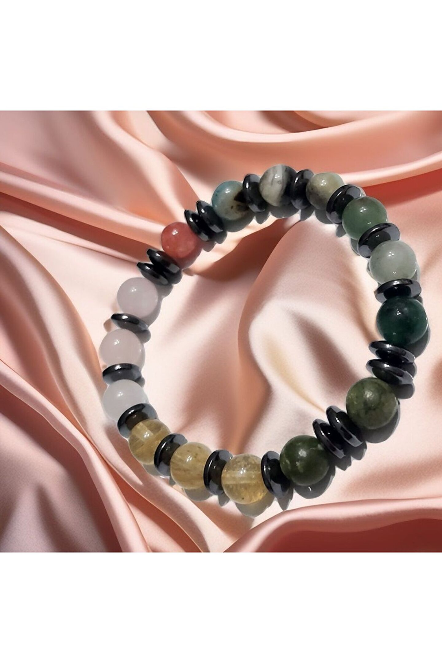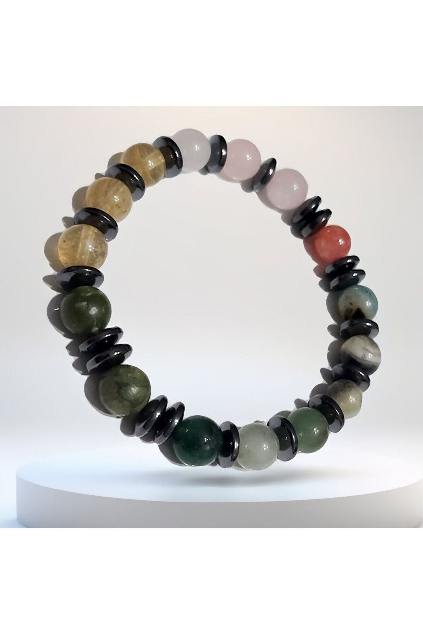 Doğal taşlar içerdiği mineraller sayesinde ve kendilerine has titreşimleri ile insan vücudunda olumlu etkilere sahiptirler. ??Taşlar bünyesinde bulundurduğu mineraller yardımı ile bedenimizde mineral bakımından eksiklikler var ise bunları tamamlamaya yardımcı olur. ??Vücudumuza yaydığı enerji ile çakraları dengelemeyi sağlarken ruh sağlığımızı korur, negatif enerjileri emip pozitif enerji yayar.??Değerli doğal taşların özellikleri ve faydalarını; %100 tedavi yöntemi olarak değil, yardımcı bir alternatif olarak değerlendirmeliyiz. ??Bu modelde esnek misina kullanılmıştır.??ürünlerimiz kendi tasarımımızdır. ??Doğaltaşlar kesim itibari ile renk ve şekil değişikliği gösterebilmektedir.