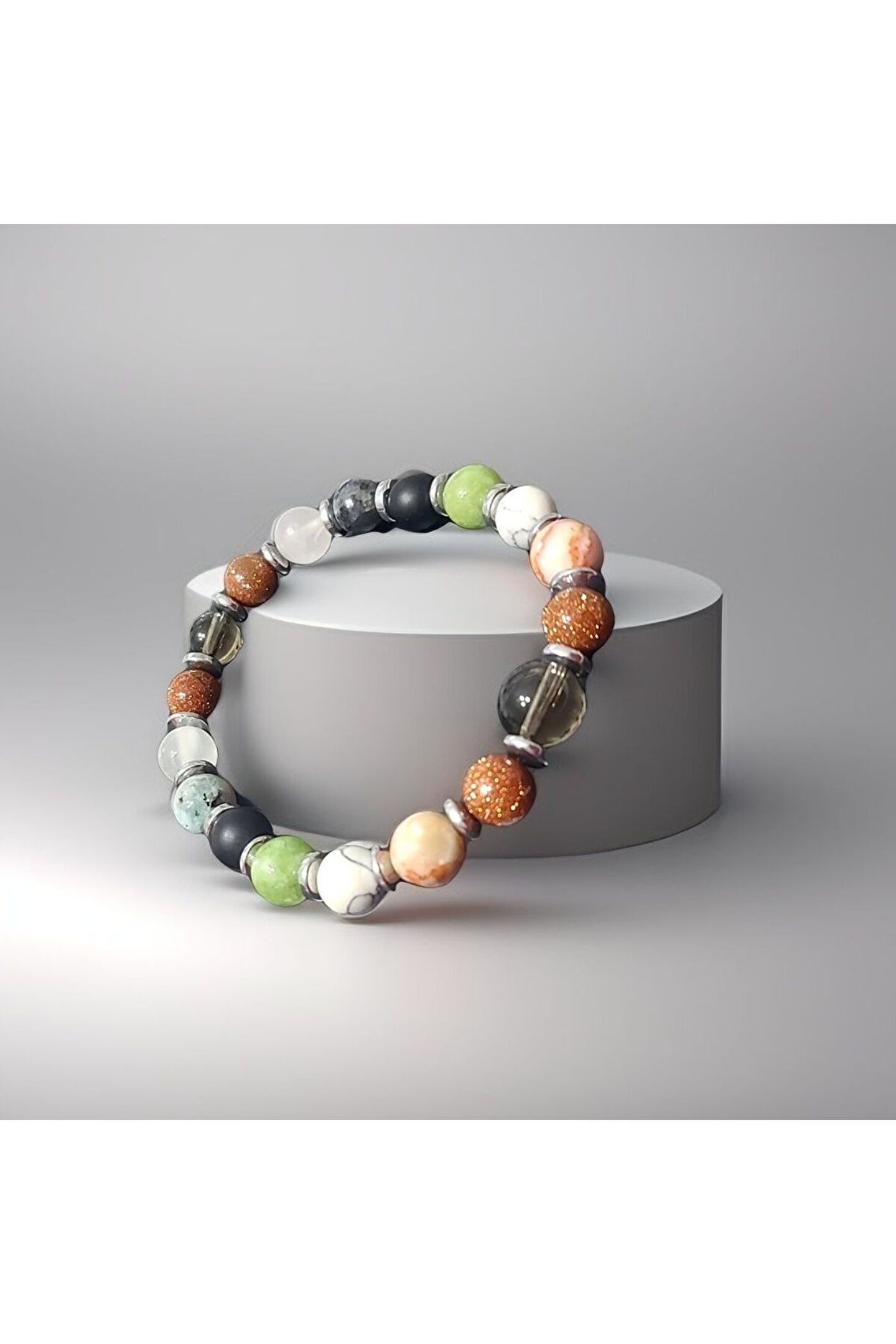 ??Doğal taşlar içerdiği mineraller sayesinde ve kendilerine has titreşimleri ile insan vücudunda olumlu etkilere sahiptirler. ??Taşlar bünyesinde bulundurduğu mineraller yardımı ile bedenimizde mineral bakımından eksiklikler var ise bunları tamamlamaya yardımcı olur. ??Vücudumuza yaydığı enerji ile çakraları dengelemeyi sağlarken ruh sağlığımızı korur, negatif enerjileri emip pozitif enerji yayar.??Değerli doğal taşların özellikleri ve faydalarını; %100 tedavi yöntemi olarak değil, sorunumuzun yada eksikliğimizin giderilmesinde yardımcı bir alternatif olarak değerlendirmeliyiz. ??Bu modelde esnek misina kullanılmıştır.??ürünlerimiz kendi tasarımımızdır. ??Doğaltaşlar kesim itibari ile renk ve şekil değişikliği gösterebilmektedir.
