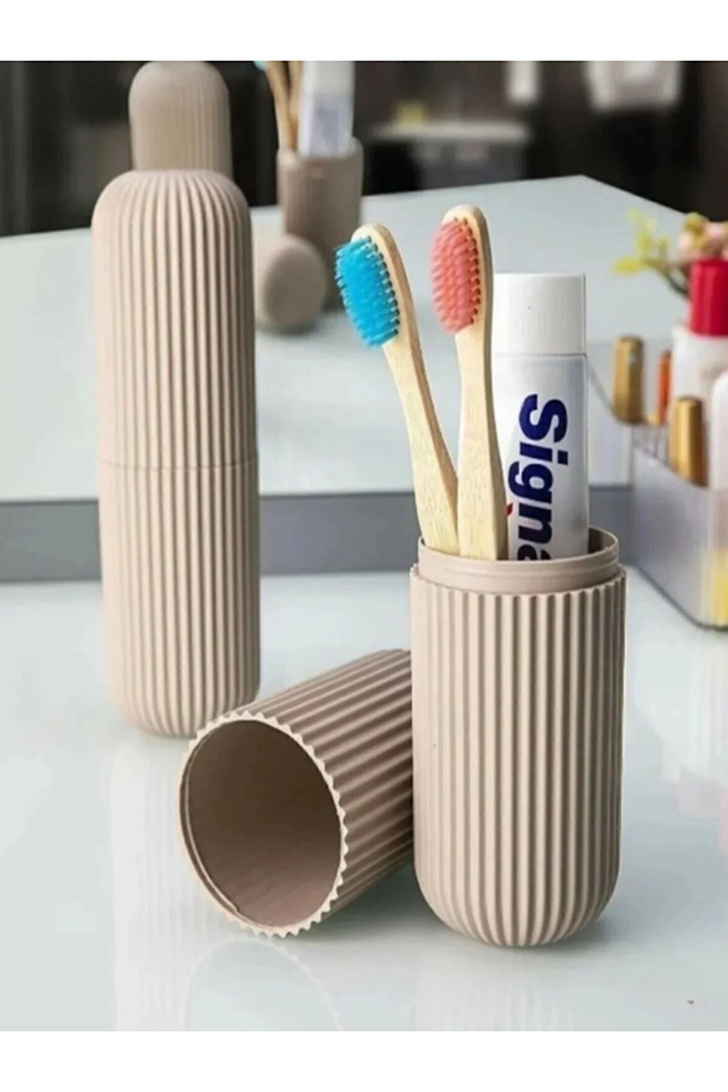 Dayanıklı plastik malzemeden üretilmiş olup, uzun süreli kullanım için idealdir; Tek parça halinde gelen bu ürün, kolayca taşınabilir ve saklama kabı olarak da kullanılabilir; Diş fırçası ve diş macunu için özel olarak tasarlanmıştır, böylece seyahatlerde bile hijyenik bir şekilde bakımınızı sürdürebilirsiniz; Çok amaçlı tasarımı sayesinde, kişisel bakım ürünlerinizi düzenli bir şekilde saklamanızı sağlar;