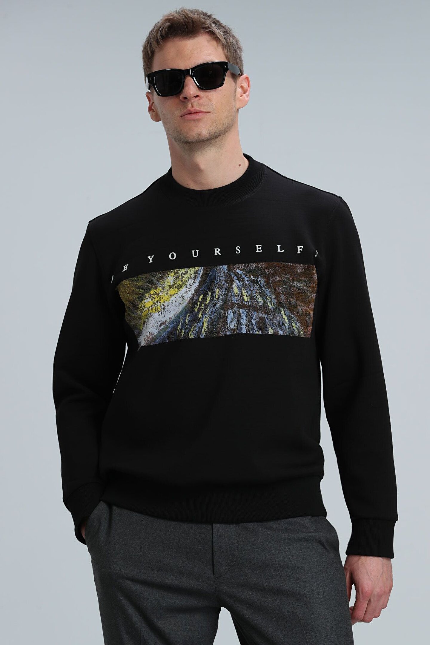 Erkek Baskılı Kapüşonlu ve Kordon İpli Sweat - Siyah