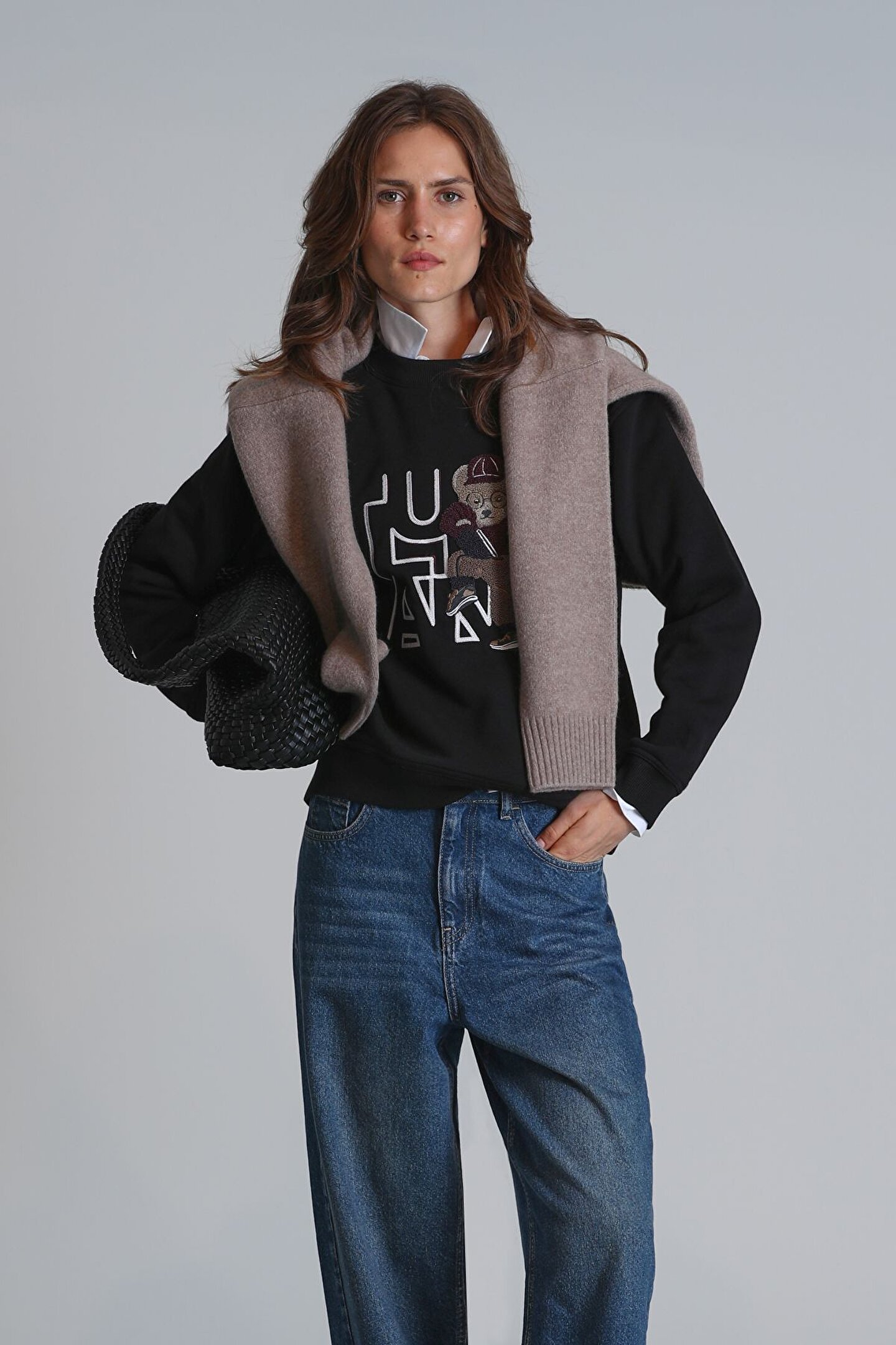 Pıtcher Kadın Örme Sweatshırt Siyah
