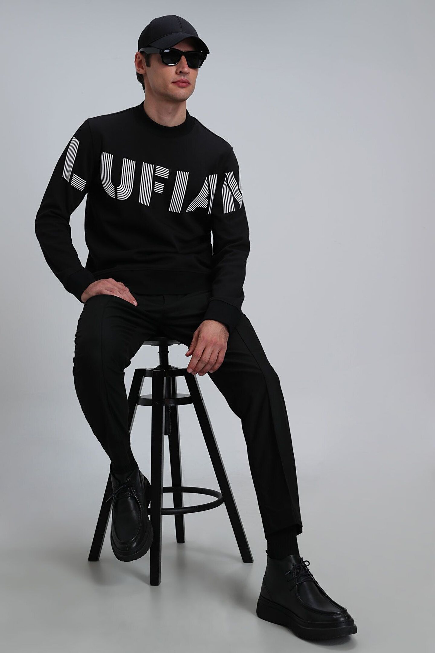 MODA Erkek Baskılı Kapüşonlu ve Kordon İpli Sweat - Siyah