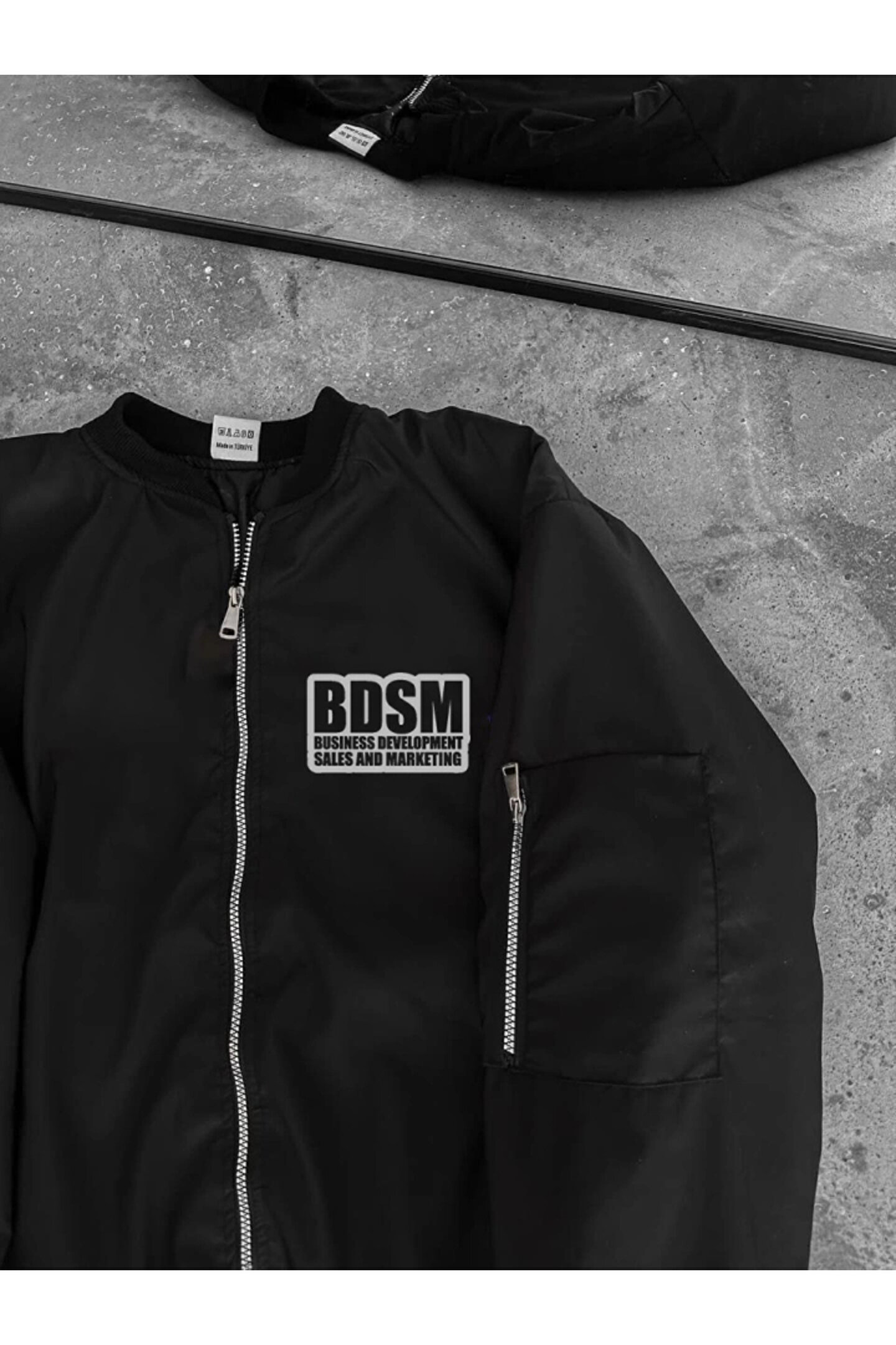 İçi Kapitone Astarlı Tam Kalıp Baskılı Bomber Ceket - Siyah