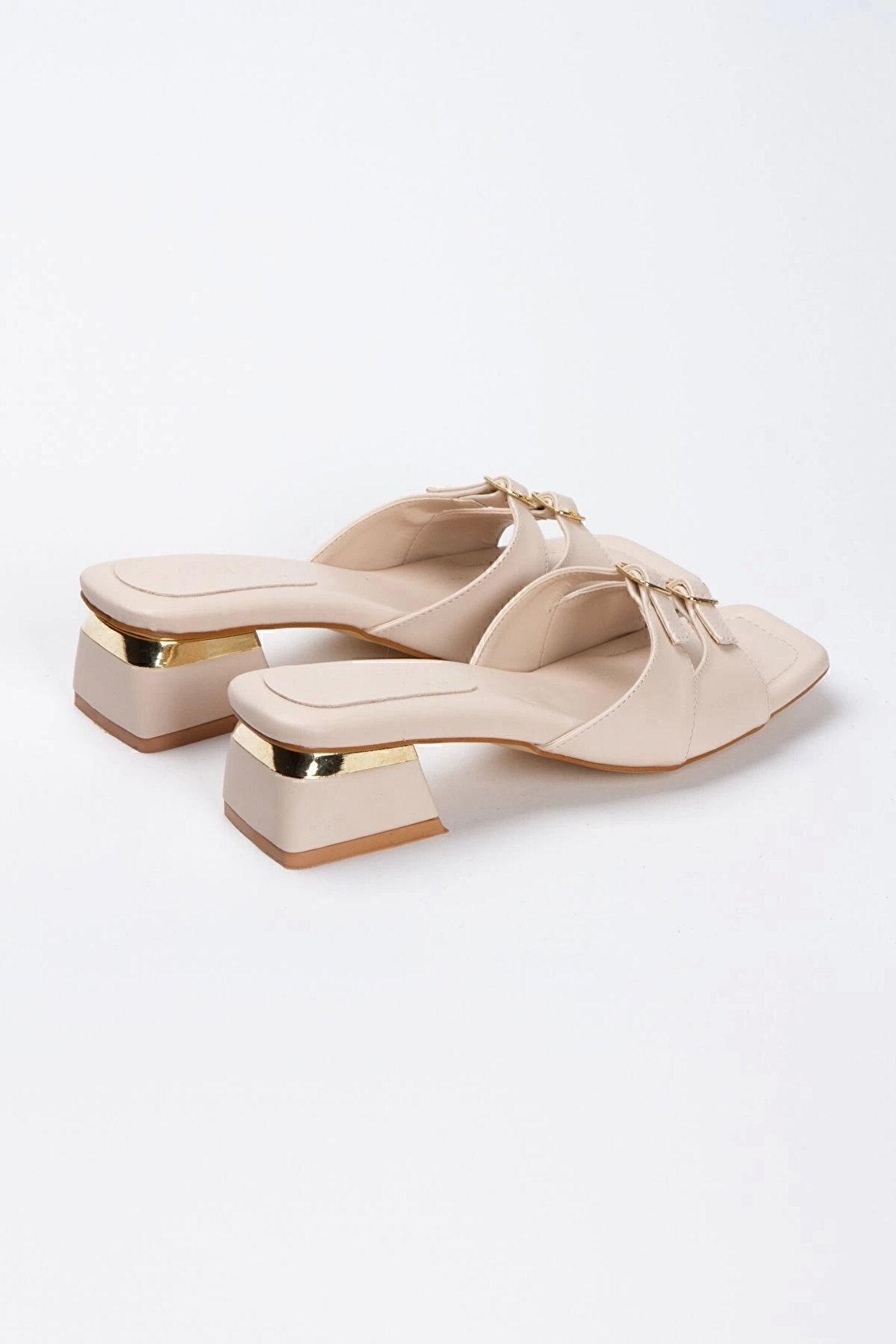 Kadın 4 Cm Tam Kalıp Tarz Topuklu Terlik Nude