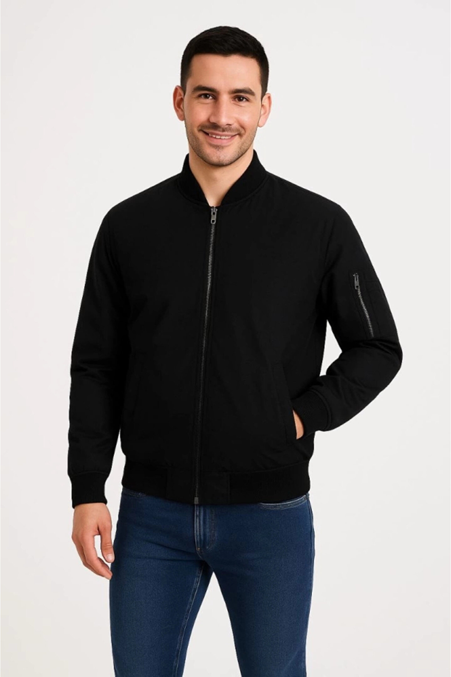 Erkek Içi Astarlı Fermuarlı Bomber Mont Ceket - Siyah