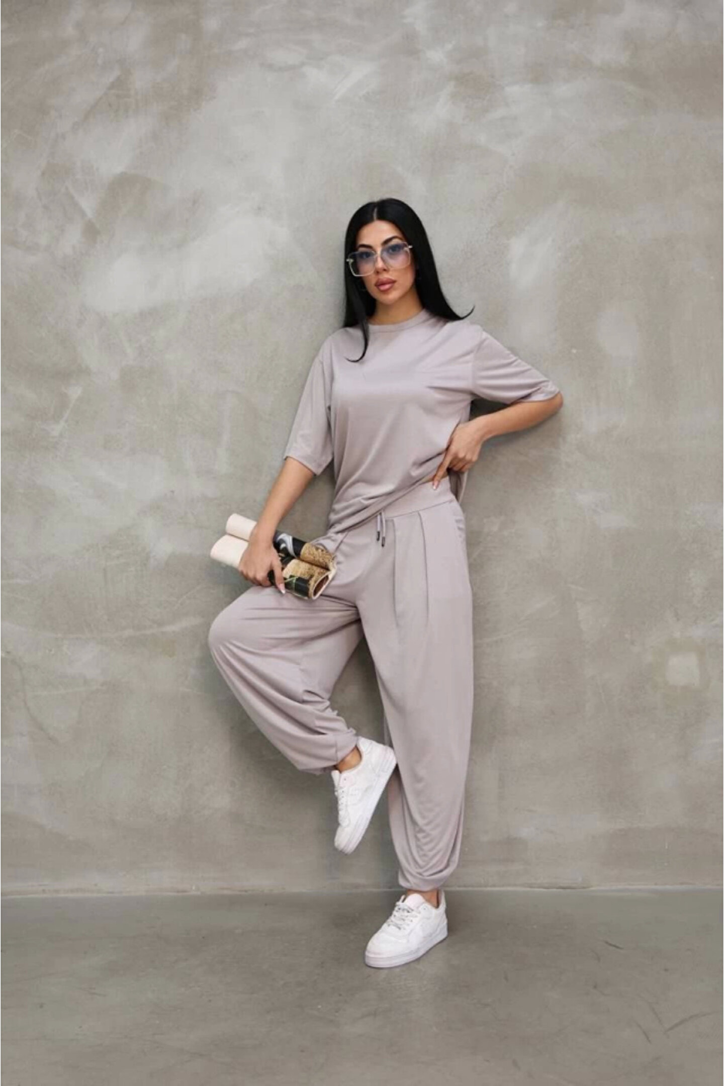 LUMİART Osy Modal Yumuşak Dokulu Kumaş Oversize Bisiklet Yaka T-shirt Jogger Eşofman Altı Eşofman Takımı - G