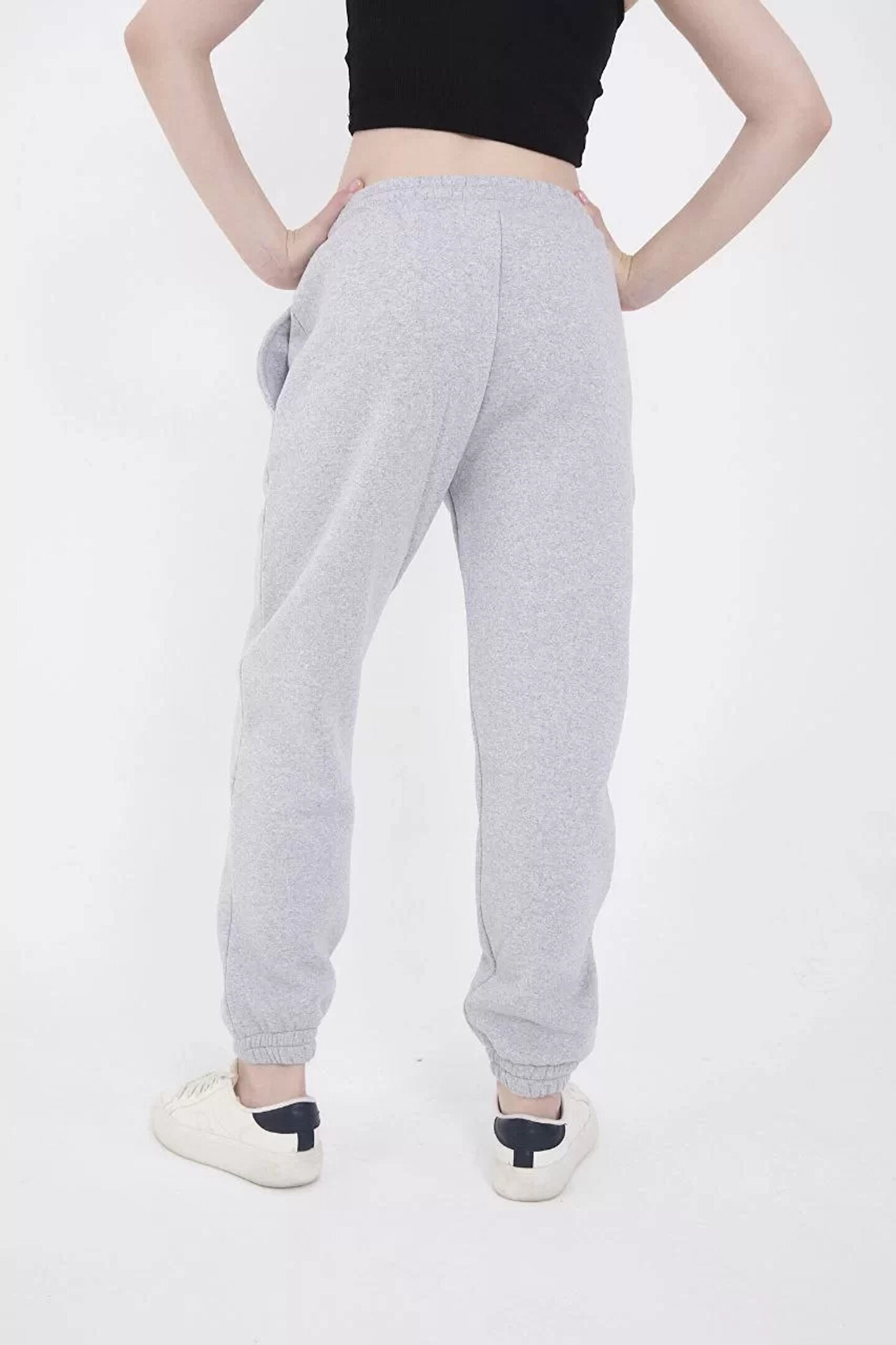 LUMİART Üç İplik Lastikli Baskılı Eşofman Pantolon - Gri