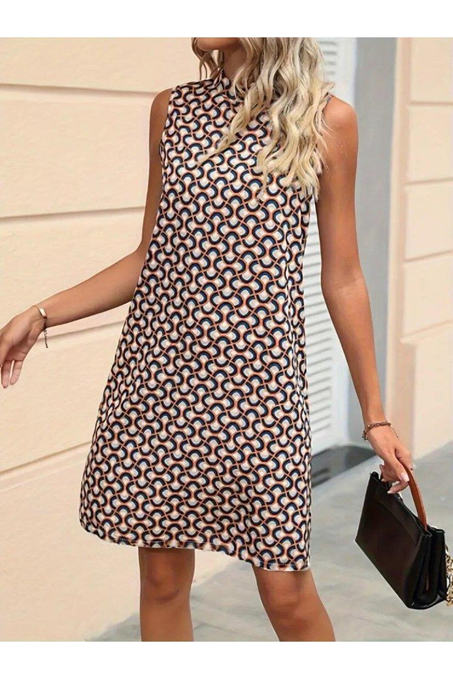 MAREANDPANDA Kadın Balıkçı Yaka Kolsuz Desenli Dalgıç Elbise