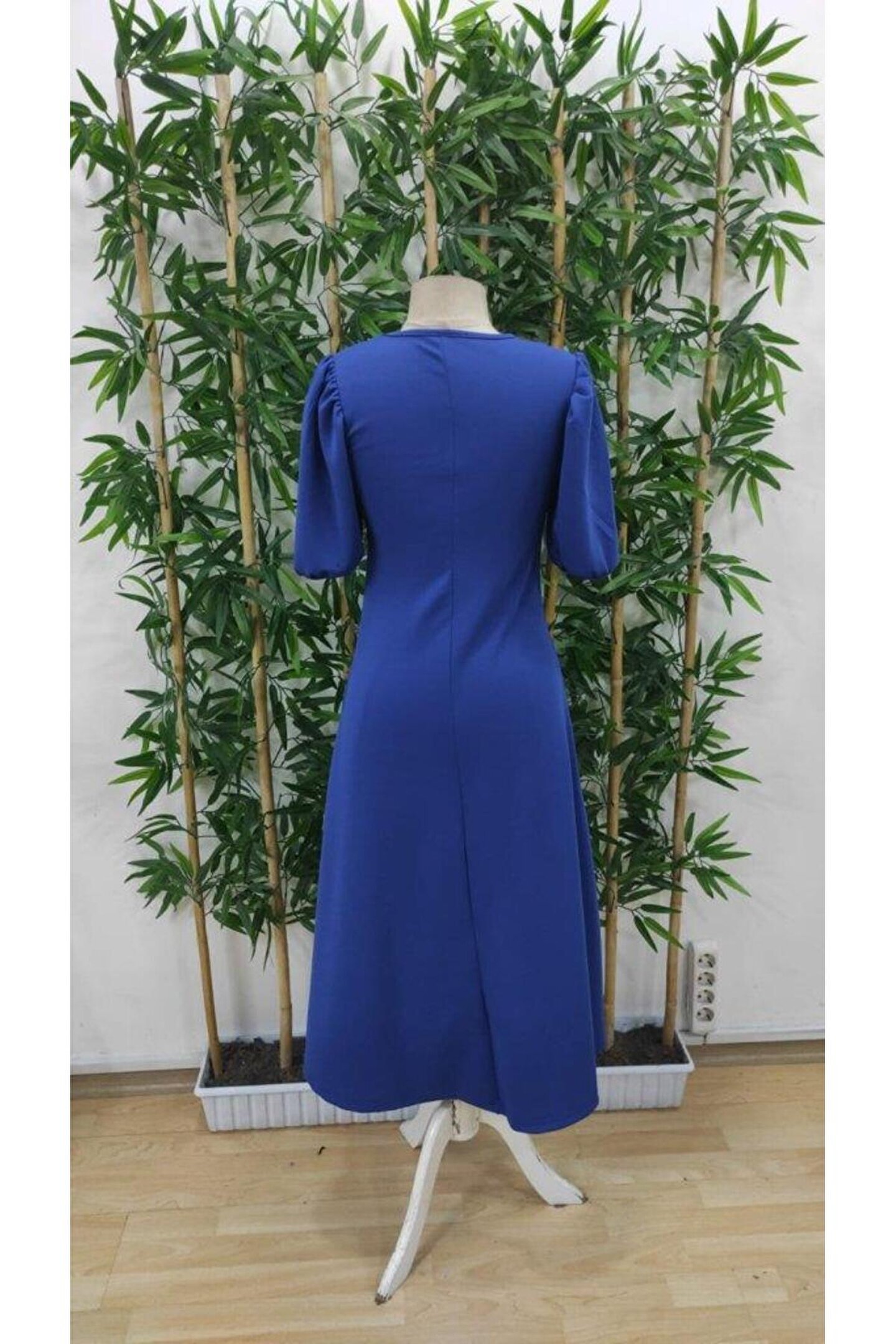 Kadın Kısa Balon Kollu Bisiklet Yaka Geniş Kesim Janjan Krep Elbise