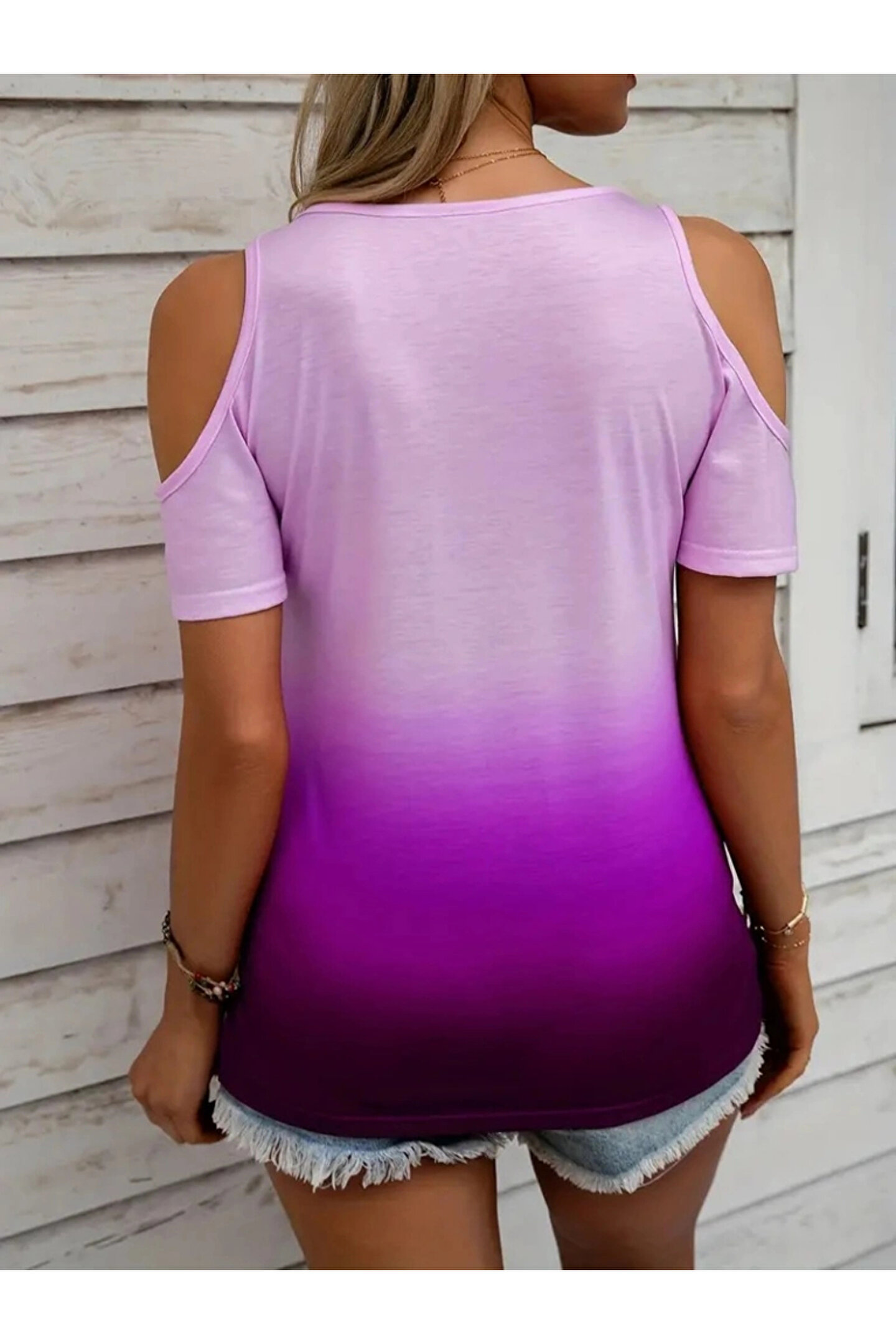 Kadın Kısa Kollu V Yakalı Iki Omuzu Açık Baskılı Süprem Bluz