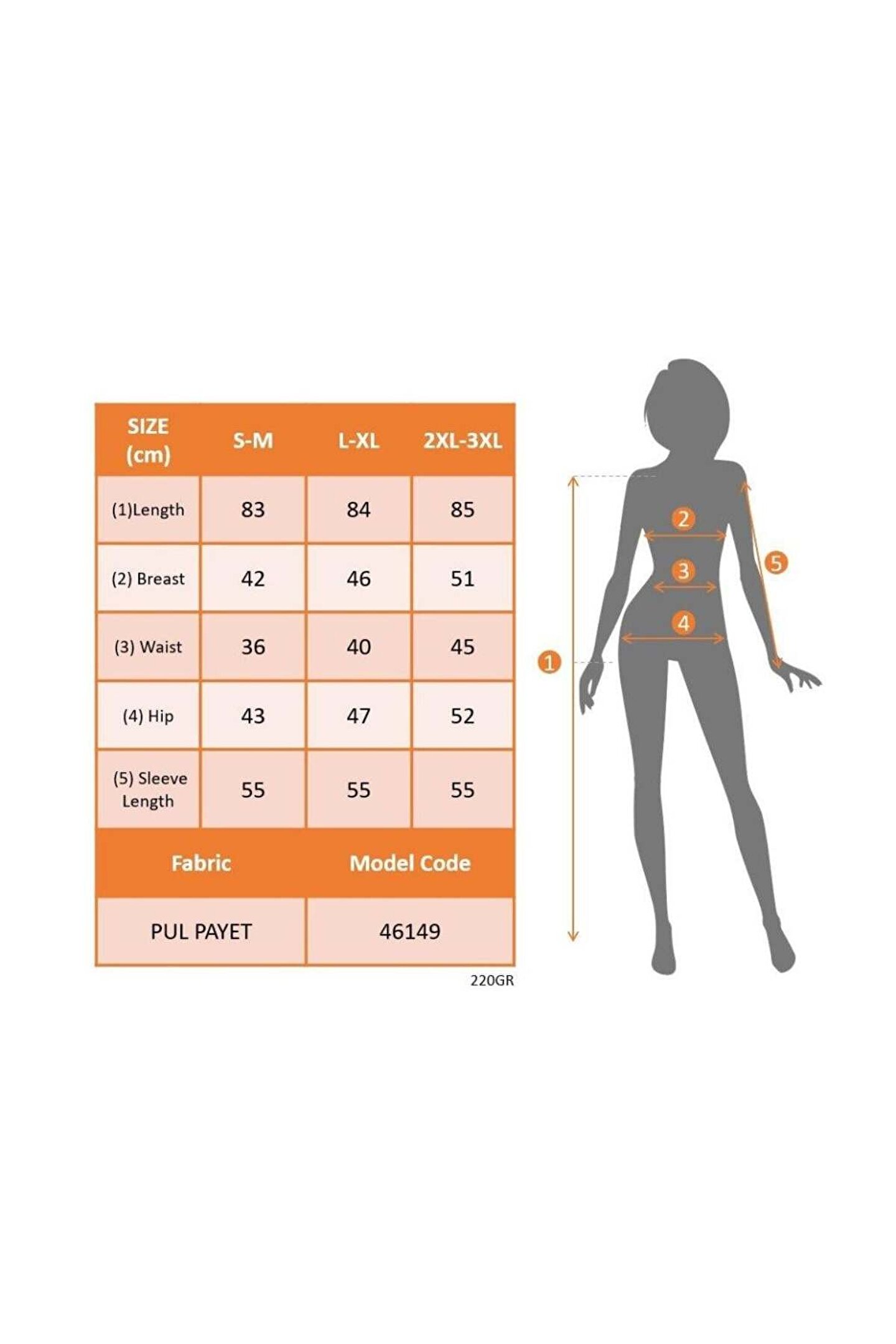 Modelin Ölçüleri: Boy:165, Kg:55, Göğüs:90, Bel:72, Kalça: 100