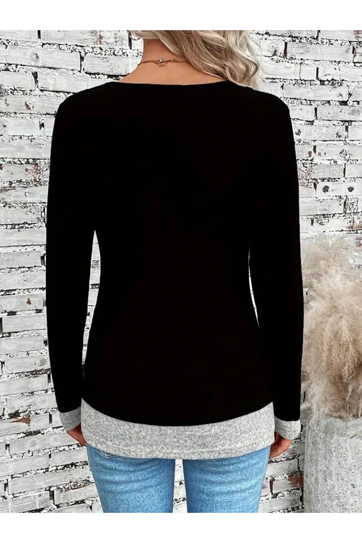 MAREANDPANDA Kadın Uzun Kollu Yuvarlak Yaka Blok Renkli Yandan Düğmeli Viskon Bluz