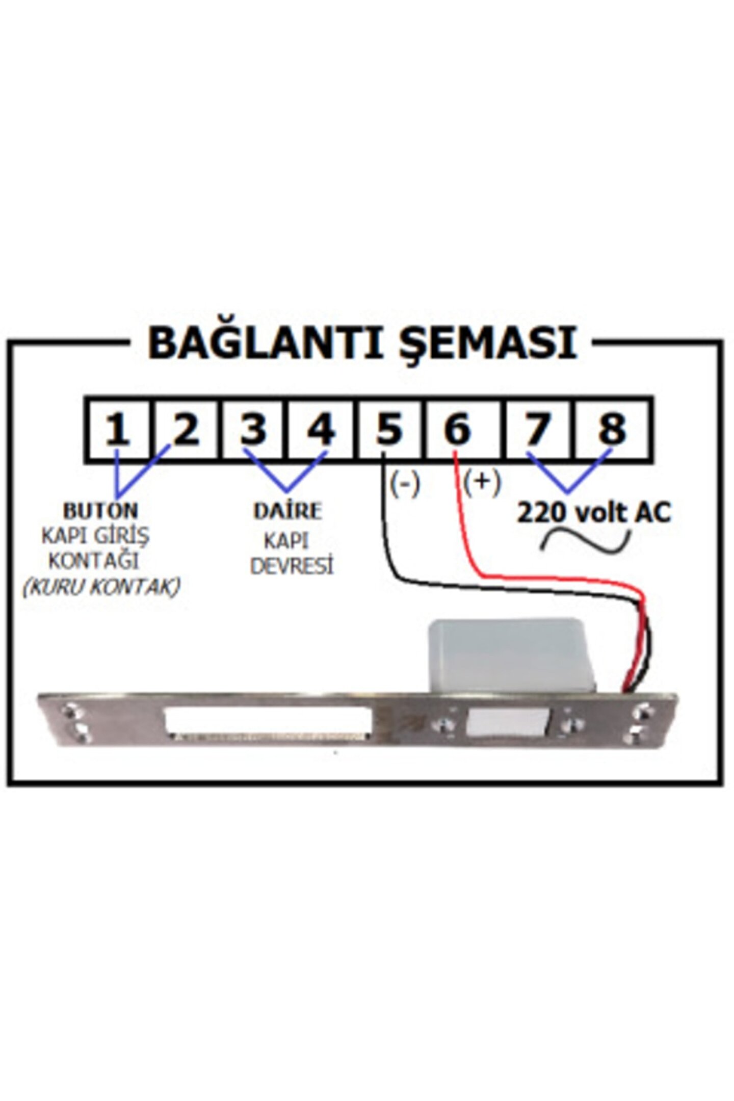 Otomatik Bas; Aç Farklı kapanma tekniği! Bilinenlerin aksine kapı dilini ileri itekleyip 5 saniye sonra da yine yuvasına alan harika bir buluş! Yaylı Dilli kilit mekanizması ile kapanan kapılar için tasarlanmıştır; Kapı otomatiğine basıldığında, kısa süreli olarak kilit dilini iter, ileride tutar ve kapının açılmasına izin verir; Süre bittiğinde (yaklaşık 5 saniye) dili ileride tutmak için uyguladığı kuvveti keser, dil tekrar yuvasına girer ve kapı tekrar güvenli hale gelir; Ürünün sorunsuz çalışması için kapı mekaniğinin problemsiz olması ve montajının ve elektriksel bağlantılarının doğru olarak yapılması gerekir; Kapı otomatiğine basıldığında diğer kapı otomatiği cihazlarından farklı olarak, kilit dilini 5 saniye boyunca ileri iter ve orada tutar, süresi dolduğunda tekrar kilitler; Patentli olan bu özelliği sayesinde, kapının açılıp tekrar kurulması gerekmeden güvenli hale gelmesini sağlar; Alın sacı 3 mm; kalınlığında paslanmaz sacdan ve yekpare olması nedeniyle dayanıklıdır; Elektronik kontrol kutusu ve BAS; AÇ kilit karşılığından oluşur; Elektronik kontrol kutusu, 220 Volt AC besleme ile çalışır; Kontrol kutusunda BAS; AÇ için gerekli düşük voltaj üretilir; Kontrol kutusu, kapının civarına veya elektrik panosunun içine uygun olan herhangi bir yere yerleştirilebilir; Yerleştirilen yer kapıdan 20; 30 metreye kadar uzak olabilir; Bağlantı uçları resim galerisinde çizimde gösterilmiştir;