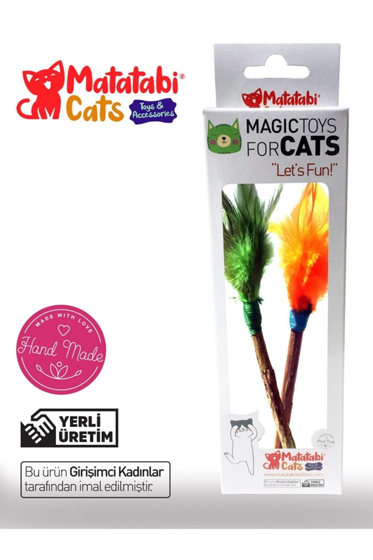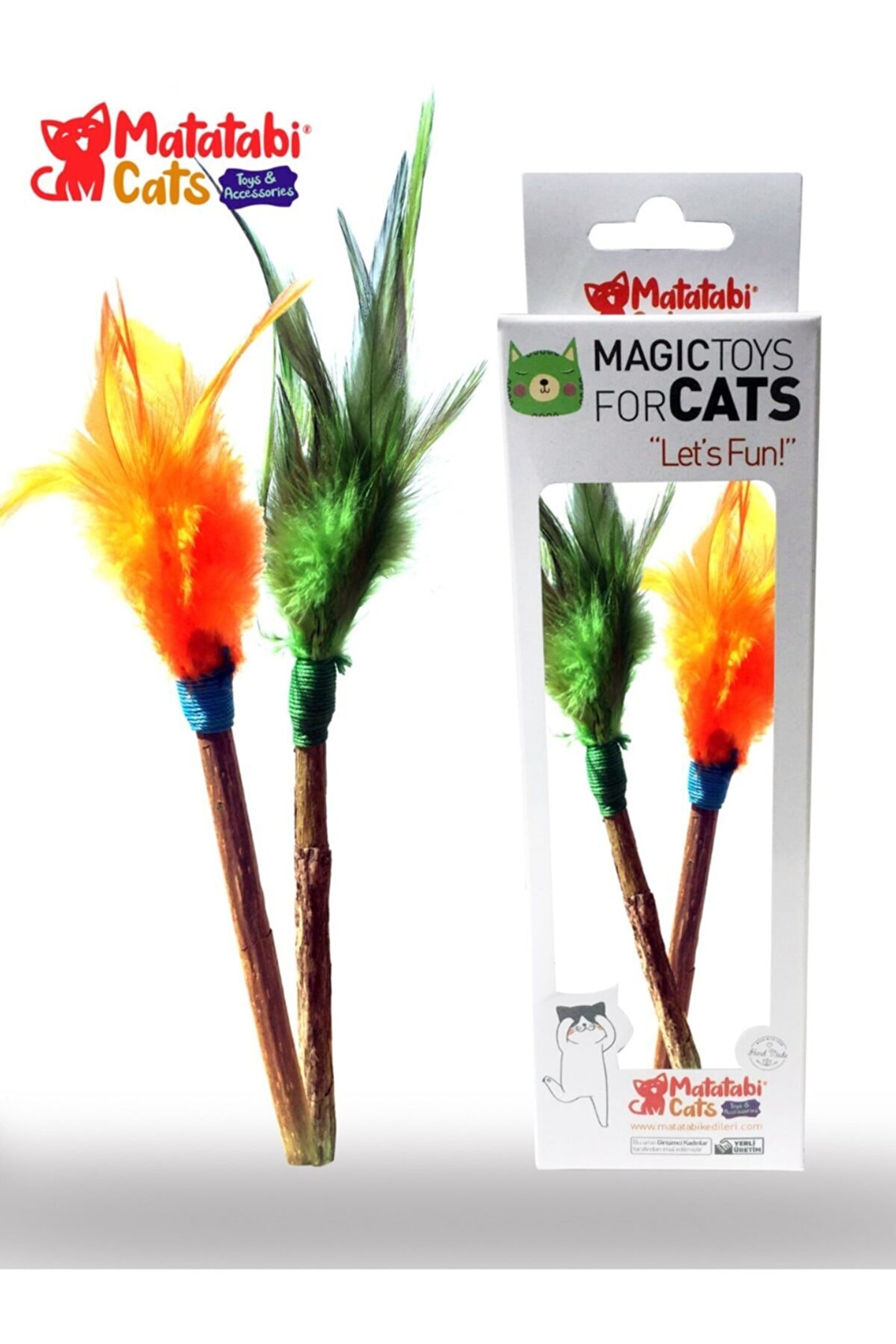 Matatabi Tüylü çubuk Matatabi ağacının seçilmiş çubukları ile kedinizin severek oynayacağı tüylerin(doğal kuş avcısı oldukları için tüy kedinize zarar vermez) eğlenceli birleşiminden oluşur; Kedilerin doğal ağacı kemirmesi sayesinde diş temizliği yapılırken ne kadar çok eğlendiğini farkedeceksiniz; Kediniz matatabi çubuğunu doğal dürtüsüyle parçalayabilir,yiyebilir; doğal ve sağlıklıdır; Tüy renklerinde tercih belirtilmediği takdirde farklı renkler gönderilebilir; çubuk kalınlığı 06mm; 10mm Kedinizin Matatabi Çubuk ile uzun süreli bir oyun arkadaşı olmasını isterseniz oyundan sonra kaldırın ve bir süre sonra tekrar verin boy 18 cm (yaklaşık) kutu içinde 2 adet ürün renkleri farklılık gösterebilir; özel taleplerin bildirilmesi rica olunur;