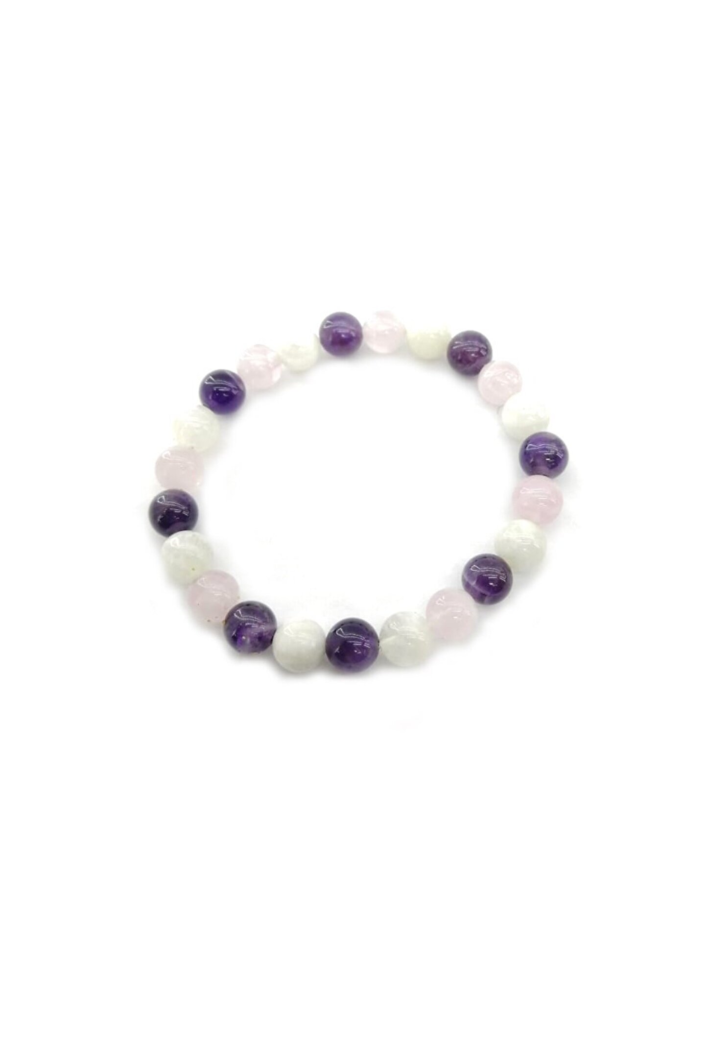Mavera Doğaltaş Ametist, Ay Taşı, Pembe Kuvars Doğal Taş Bileklik 8 mm