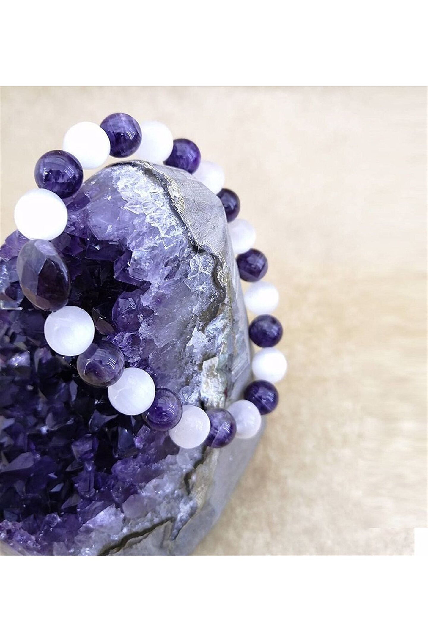 Mavera Doğaltaş Ametist, Selenit Doğal Taş Bileklik 8 mm