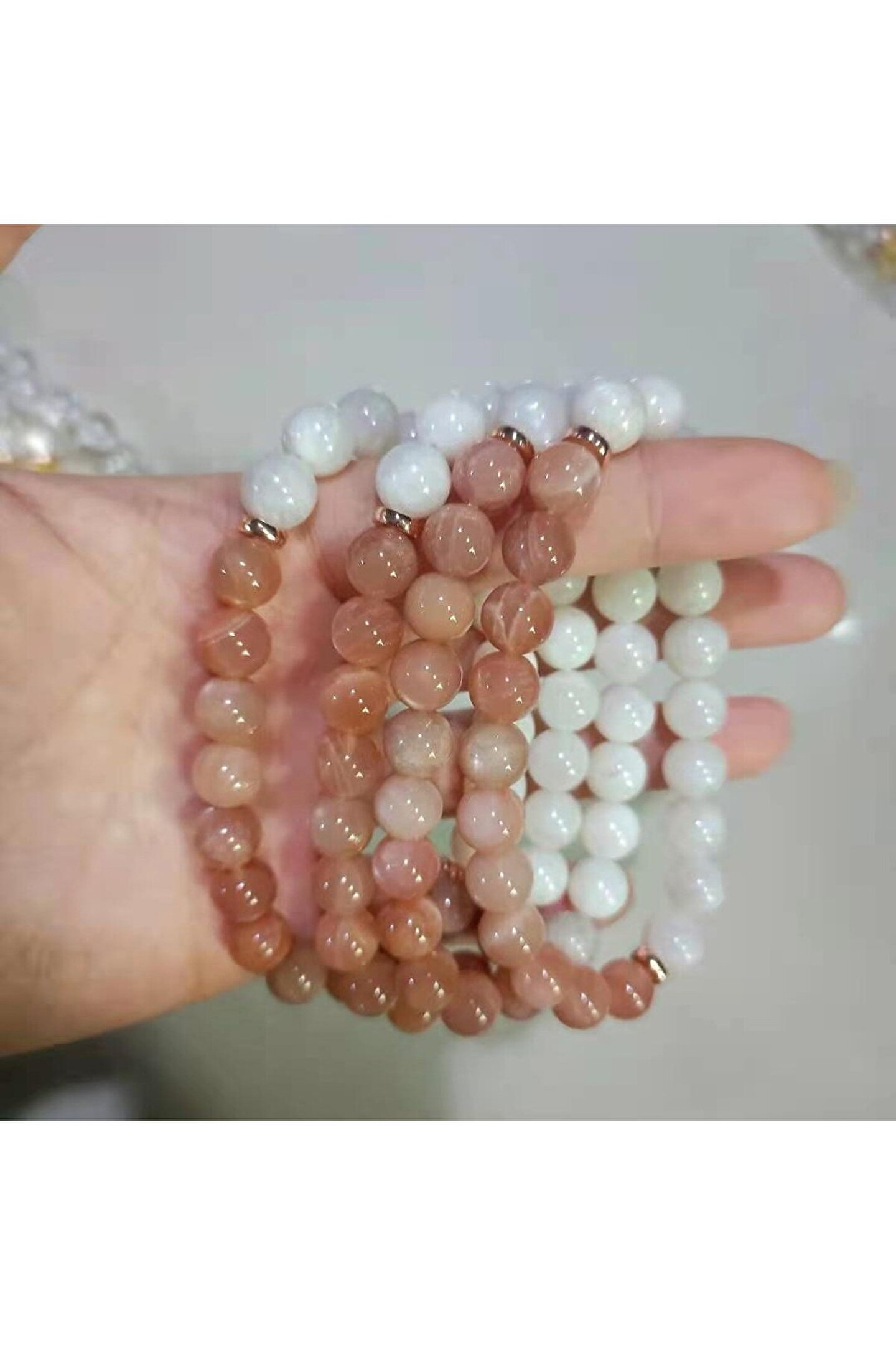 Doğal taş bileklik, hem şık hem de doğayla iç içe bir aksesuar deneyimi sunar.; Ay taşı ve güneş taşı gibi özel taşların birleşiminde oluşan bu bileklik, benzersiz ve doğal güzelliğiyle dikkat çeker.; 8mm boyutundaki doğal taş boncuklarla tasarlanmış olan bu bileklik, zarifliği ve konforu bir arada sunar.; Günlük kullanıma uygun olan bu bileklik, her tür kıyafetle kolayca uyum sağlar ve stilinizi tamamlayıcı bir aksesuar olur.;