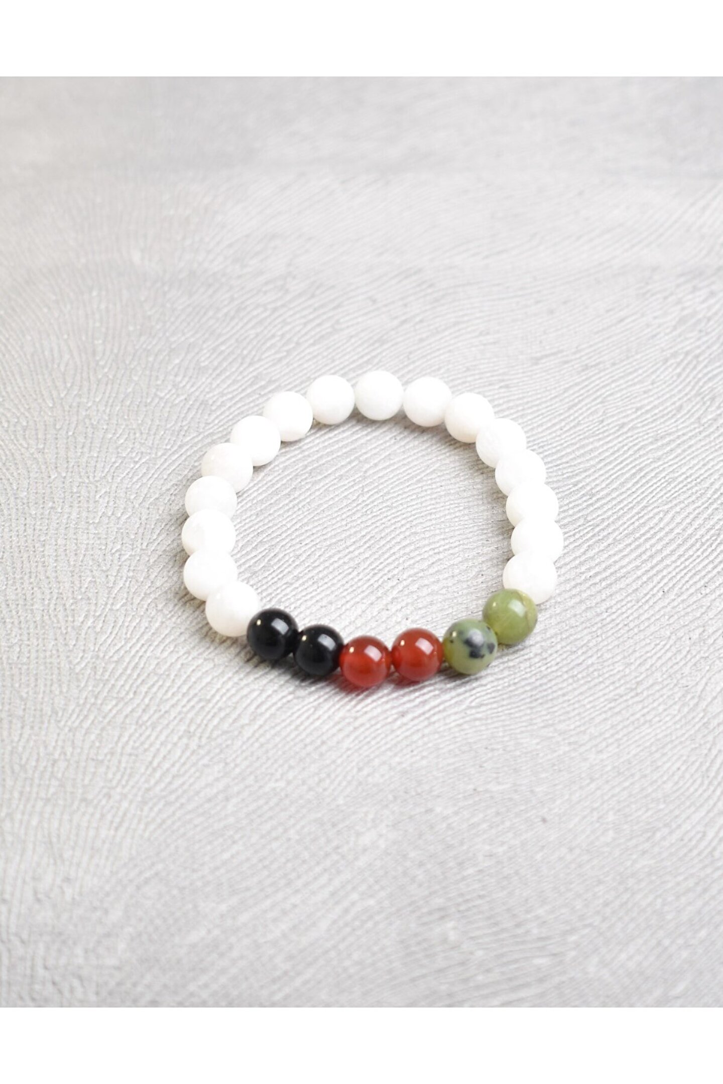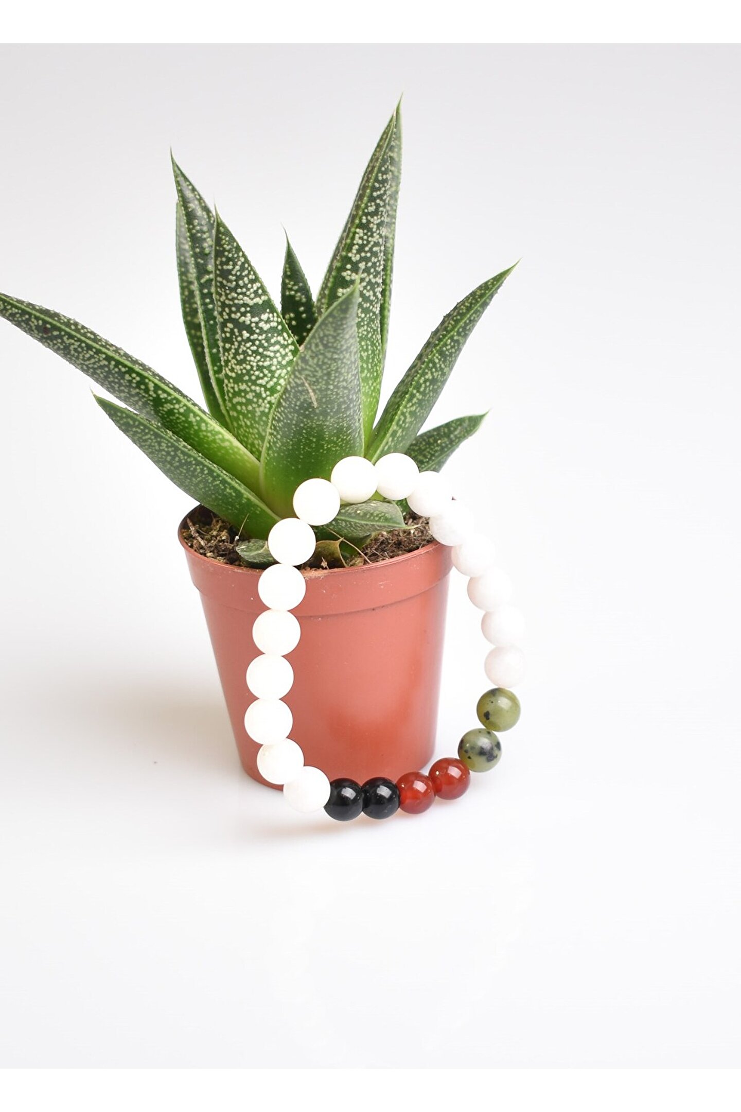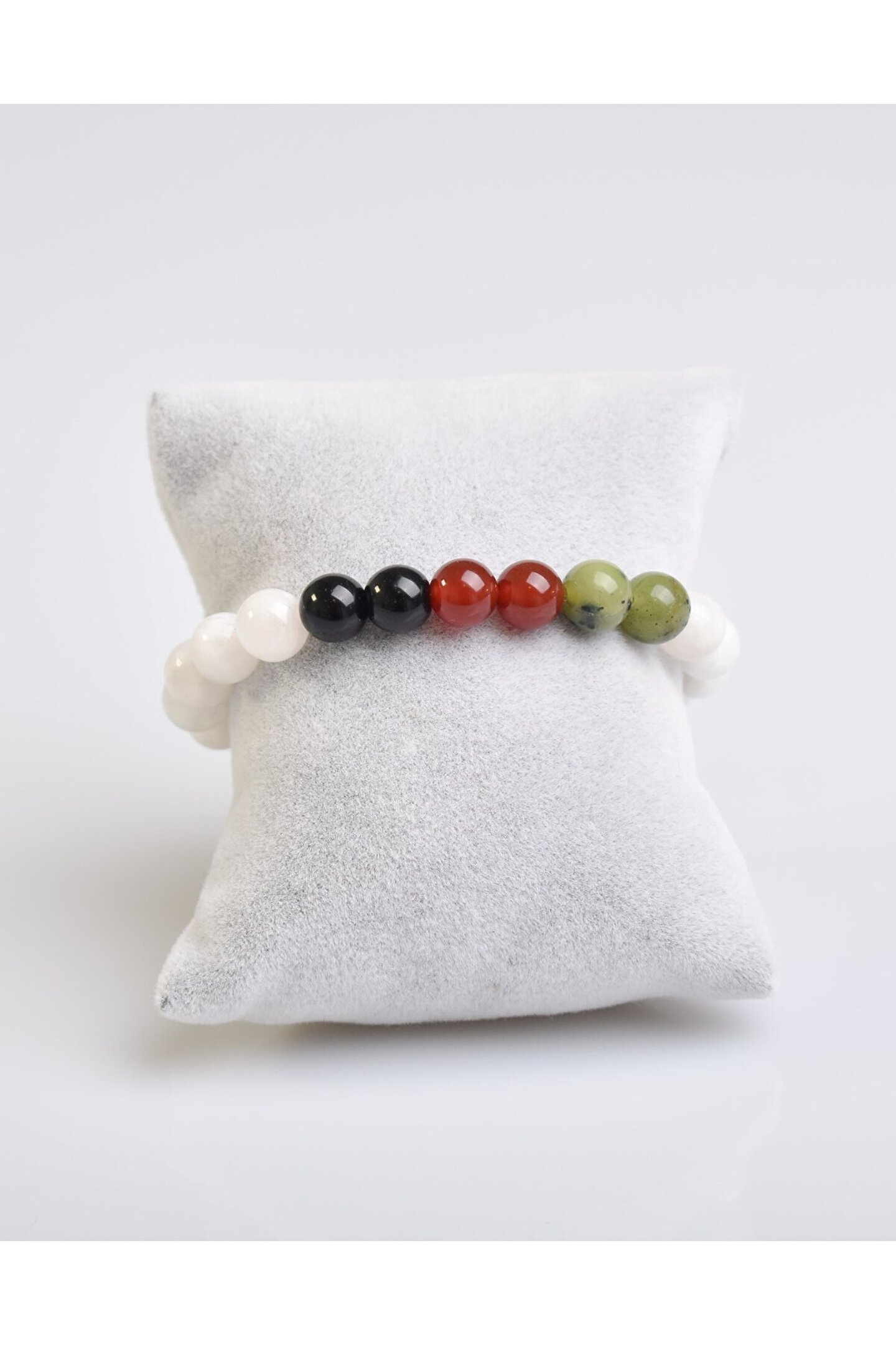 Filistin'in eşsiz güzelliğini bileğinizde taşımaya hazır olun! Bu özel bilezik, yeşim, akik, obsidyen ve ay taşı gibi doğal taşların benzersiz bir kombinasyonunu içerir; Doğal taş kullanımı sayesinde her bilezik eşsizdir ve doğanın saf güzelliğini yansıtır; Bu bilezik, hem günlük kullanım hem de özel günlerinizde şıklığınızı tamamlayacak zarif bir aksesuardır; ;;