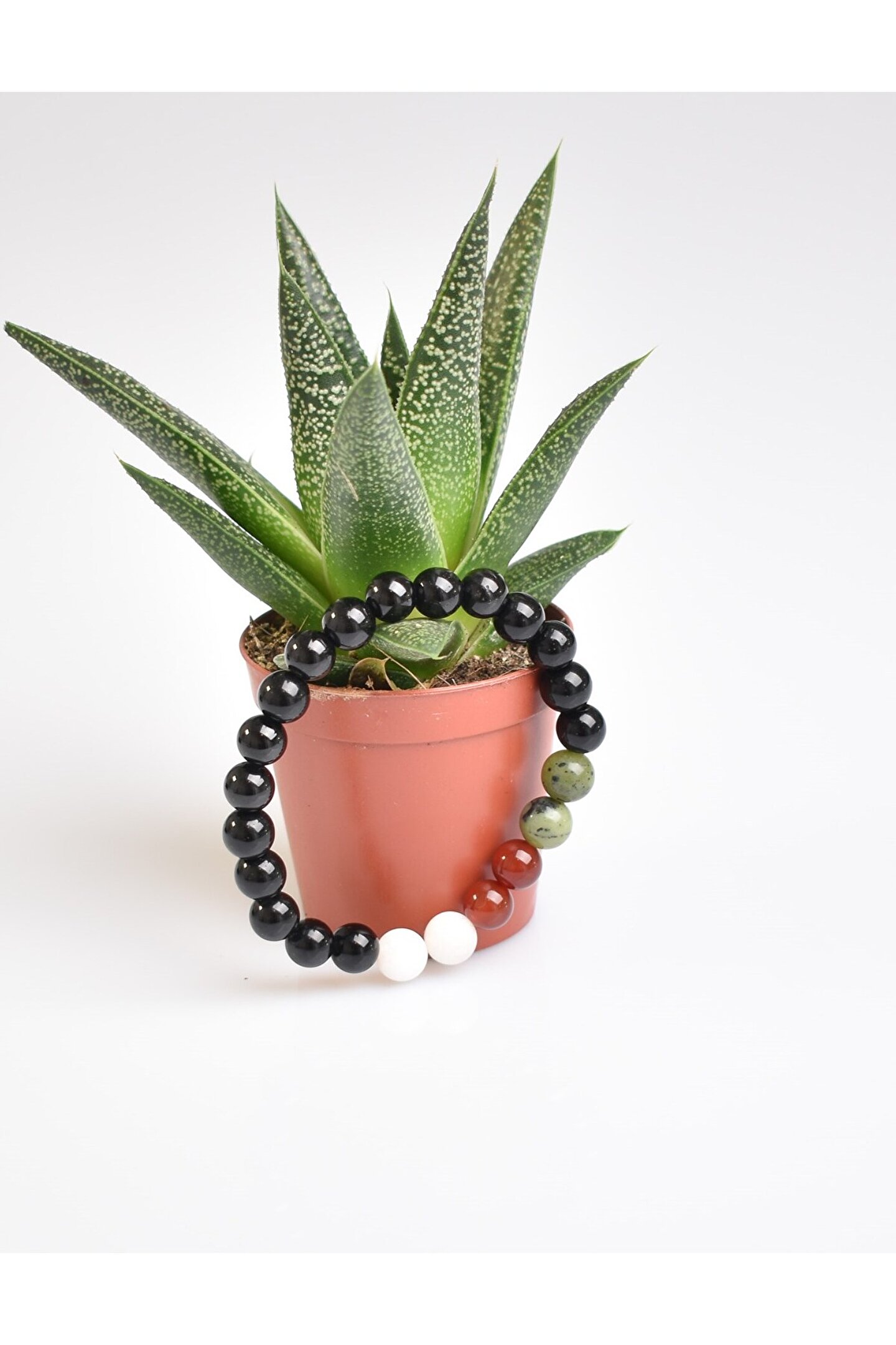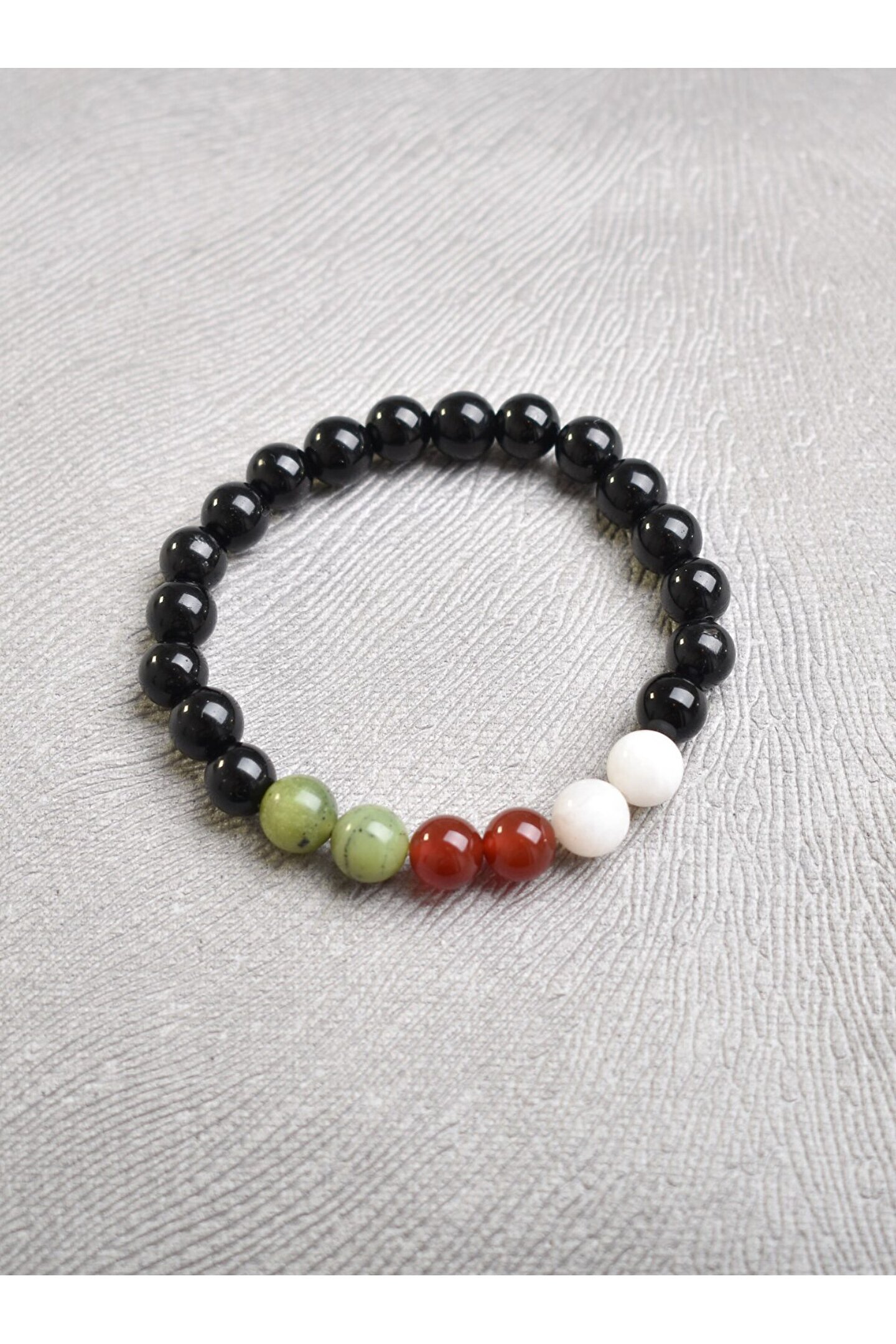 Filistin'in eşsiz doğal taşlarından üretilmiş, her biri benzersiz ve özgün bir tasarım sunar;; Yeşim, akik, obsidyen ve ay taşı gibi değerli taşların birleşimiyle zenginleştirilmiş, göz alıcı bir görünüm sağlar;; 8 mm kalınlığındaki bileklik, hem şıklığı hem de rahatlığı bir arada sunarak günlük kullanım için idealdir;; Doğal taş materyali sayesinde her bileklik, doğanın saf güzelliğini ve enerjisini yansıtır;;