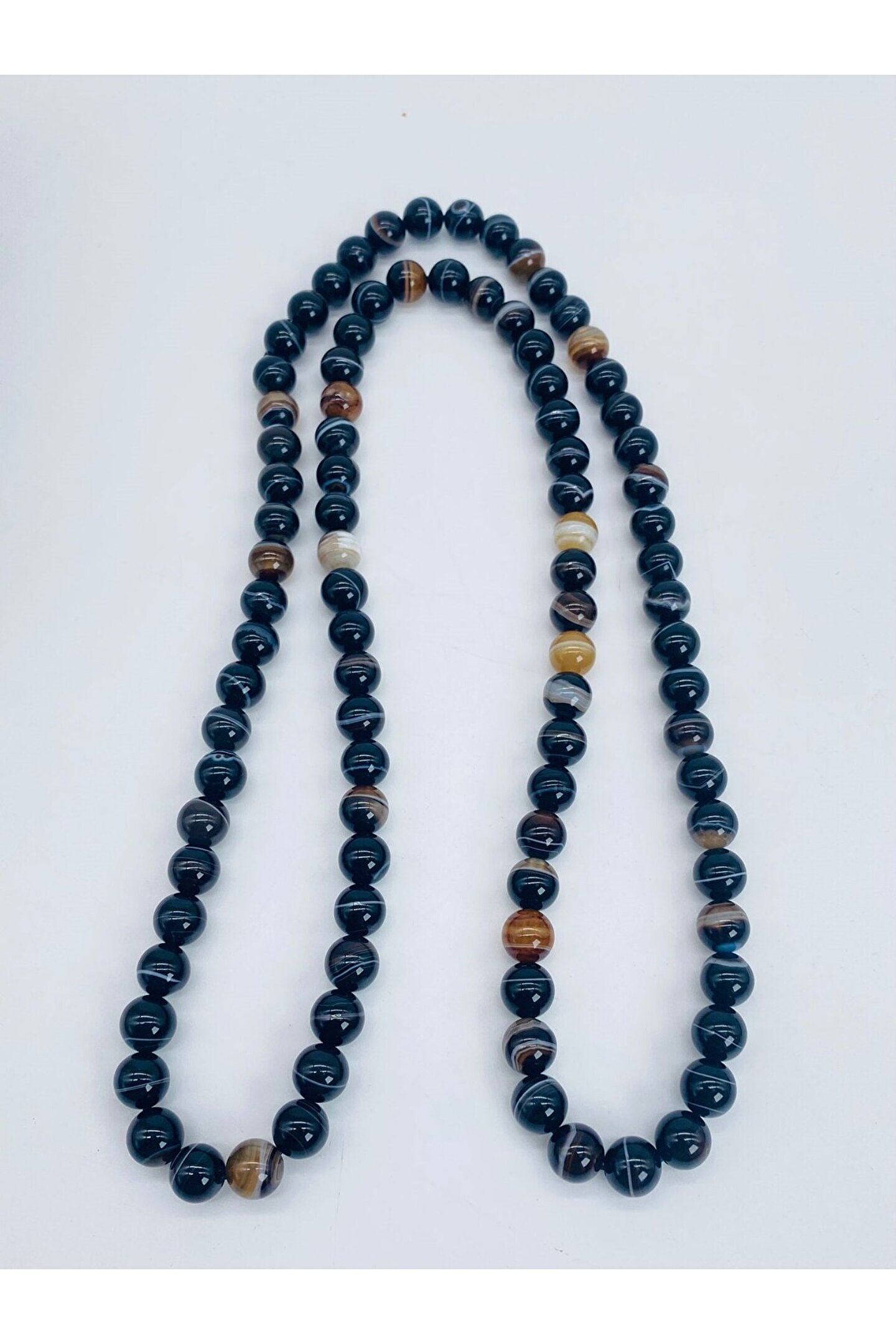 Göz Akik Doğal Taş Mala Kolye Uzunluk: 78 cm Ürünlerimiz gerçek doğal taştır. ; Sertifika ve özel kutusuyla gönderilir. ; AKİK Akik taşı, kuvars mineralinin bir türüdür ve çeşitli renklerde olabilir. ; En yaygın renkleri kahverengi, sarı, kırmızı ve yeşildir. ; Akik taşı, dünyanın birçok yerinde çıkarılmaktadır. ; En büyük akik madenleri Brezilya, Rusya, Hindistan, Meksika, Çin ve ABD'de bulunmaktadır. ; Türkiye'de de Balıkesir, Yozgat ve Ordu'da akik yatakları bulunmaktadır. ; Akik taşı, yüzyıllardır mücevher olarak kullanılmaktadır. ; Ayrıca, akik taşının şifa verici özellikleri olduğuna inanılmaktadır. ; Akik taşı, stresi azaltmaya, uyku kalitesini iyileştirmeye ve baş ağrılarını hafifletmeye yardımcı olduğu söylenmektedir.;