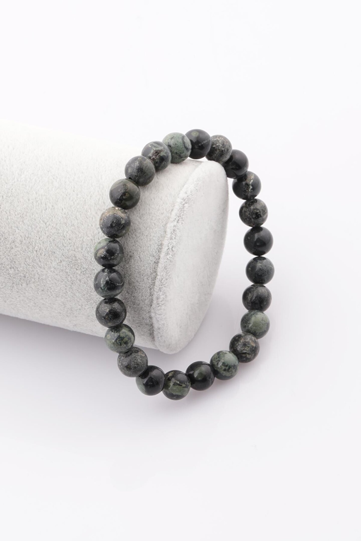 Doğal taş kullanımı sayesinde her bileklik benzersiz ve otantik bir görünüm sunar; 8 mm kalınlığındaki tasarım, hem şıklığı hem de rahatlığı bir arada sunar; Gri jasper doğal taş bileklik, günlük kullanım için idealdir ve her türlü kıyafetle uyum sağlar; Doğal taş materyali ile uzun ömürlü kullanım vaat eder ve doğallığın zarafetini bileğinizde taşımanızı sağlar;
