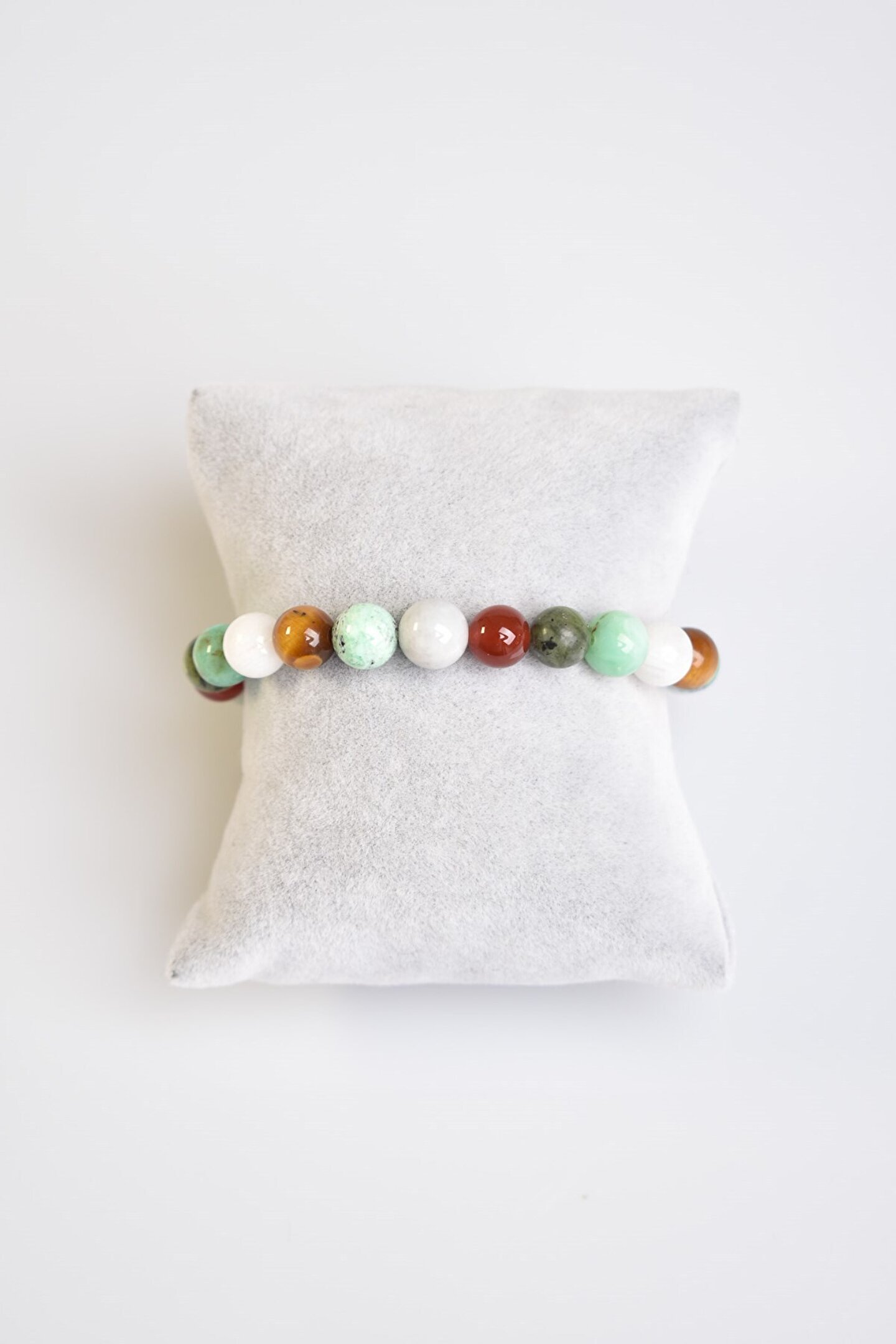 Doğal taş bileklik, şıklığınızı tamamlayacak zarif bir aksesuardır; İkizler burcu bileklik, burcunuzun enerjisini yansıtan özel tasarımıyla dikkat çeker; 8 mm boyutundaki doğal taşlar, bileğinizde rahat bir kullanım sunar ve gün boyu konfor sağlar; Doğal taş materyali ile hem estetik hem de doğallığı bir arada sunarak, her türlü kıyafetle uyum sağlar;