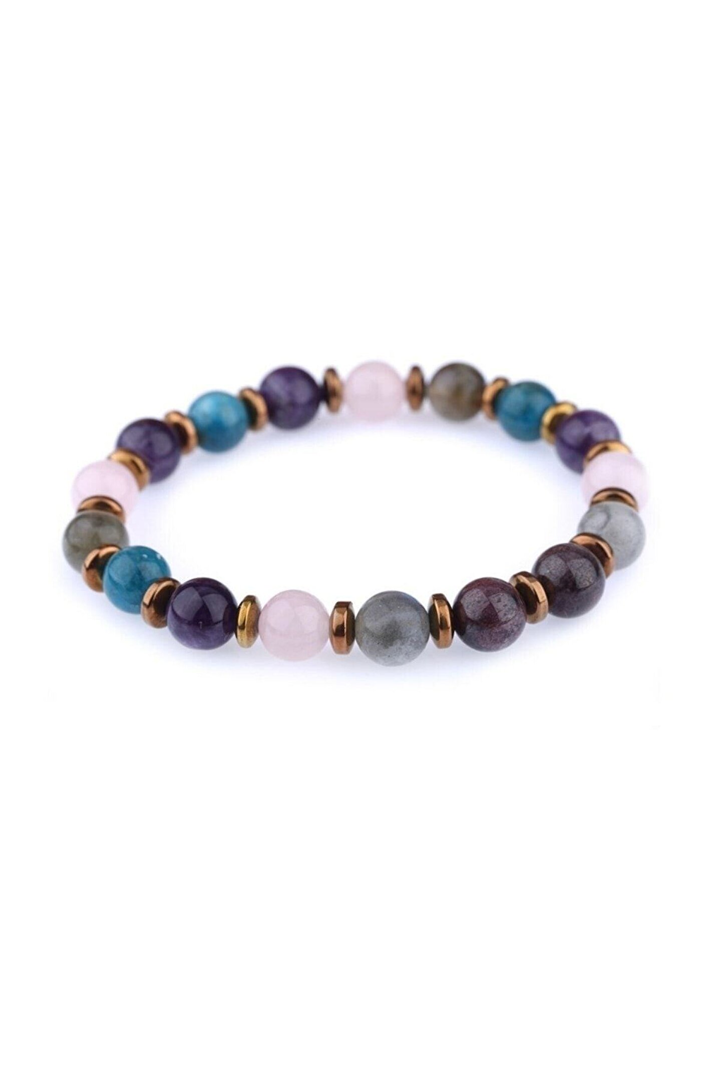Mavera Doğaltaş Lal Pembe Kuvars Hematit Labrodite Ametist Apatit Doğal Taş 8 mm Bileklik