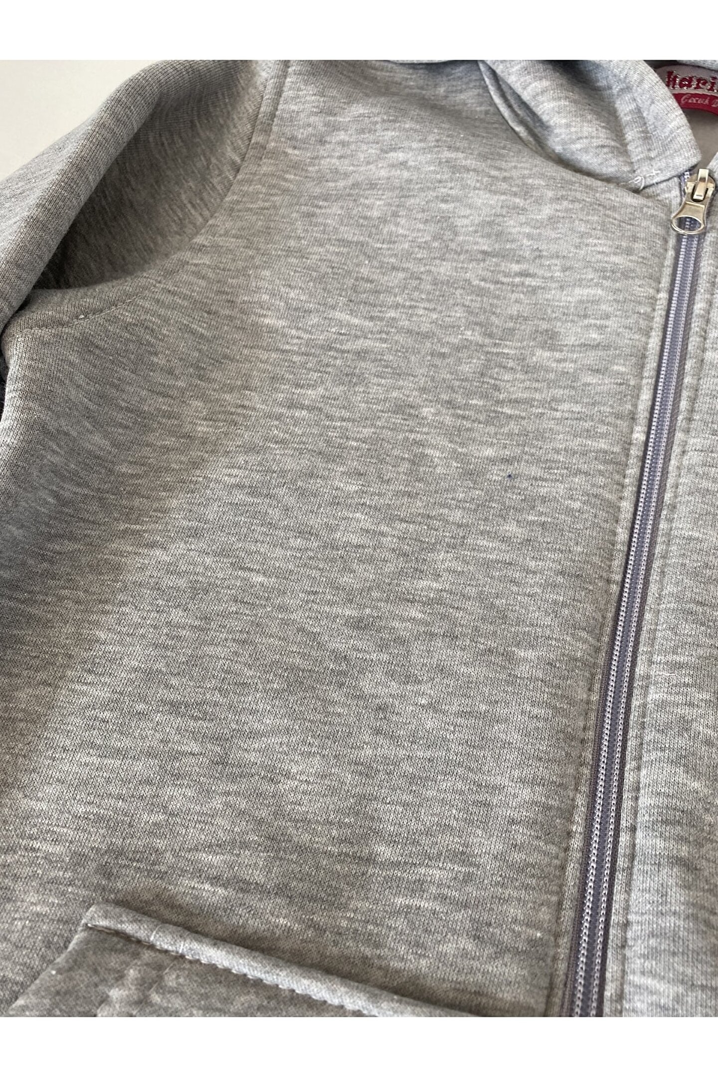 Mavera Gri Baskılı Cepli Fermuarlı Kapşonlu Ceket