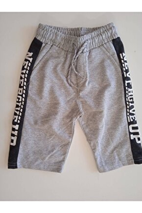 Mavera Gri Cepli Beli Lastikli Kenarı Baskılı Şort