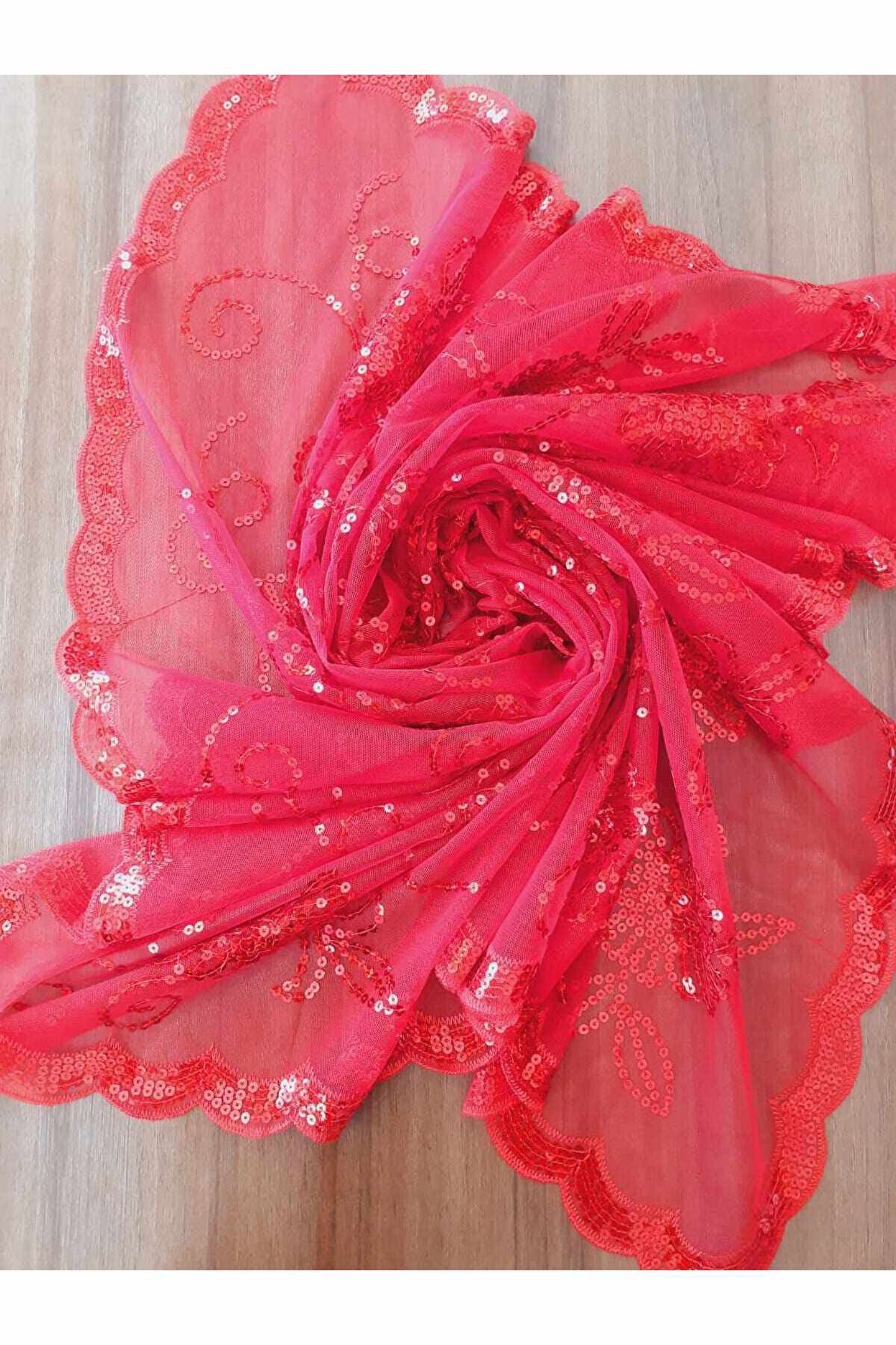 - Zarif tül modeli, gelinlerin şıklığını ön plana çıkarır ve düğün gününde göz alıcı bir görünüm sağlar; - Kırmızı renk seçeneği ile gelinlerin enerjisini ve tutkusunu yansıtır, özel günlerinde kendilerini daha özel hissetmelerini sağlar; - Pullu detaylar, gelin duvağına sofistike bir dokunuş katarak, zarafeti ve zarafeti simgeler;