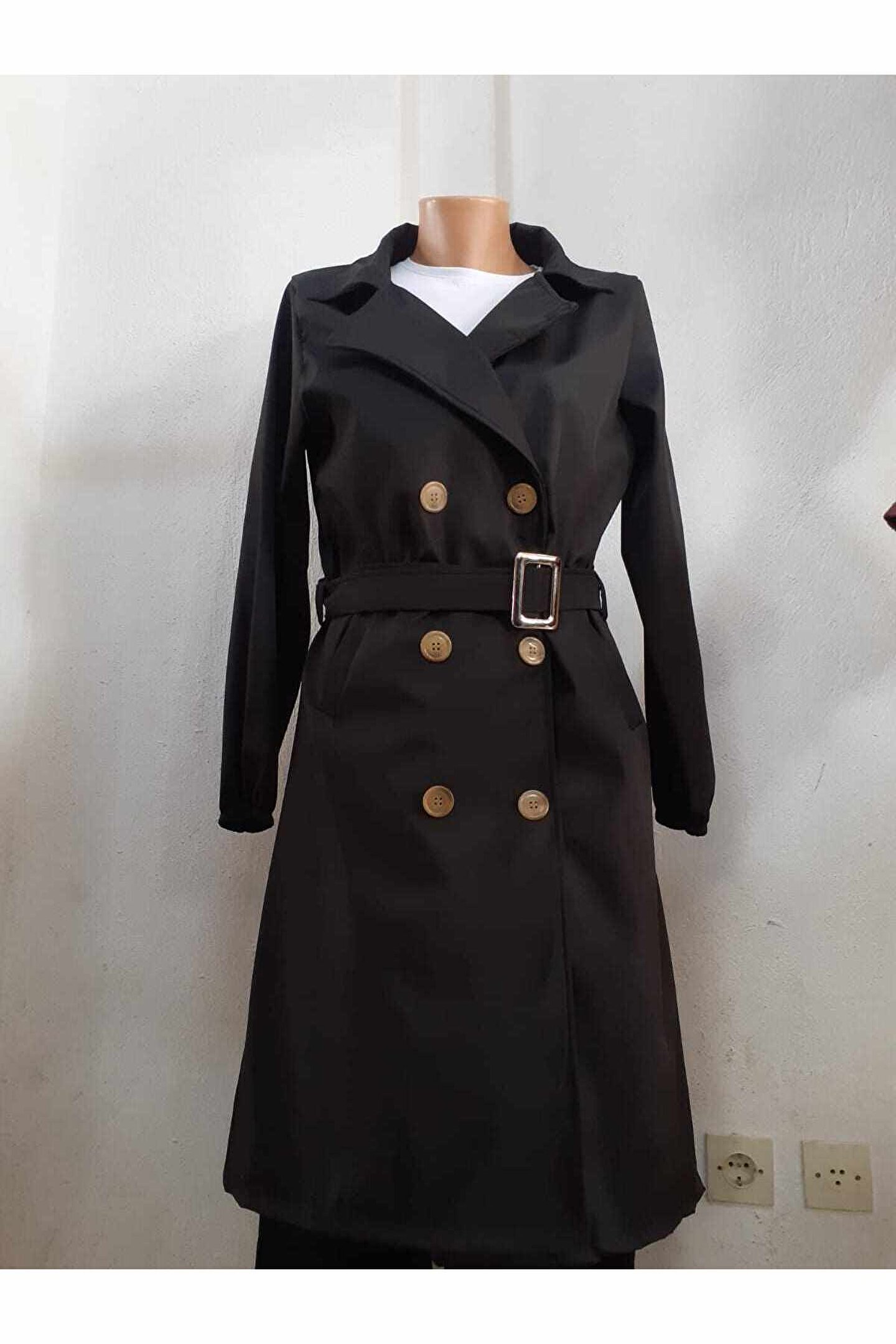 Mavera Siyah Beli Bağlamalı Ve Düğmeli Yakalı Trenç Ceket