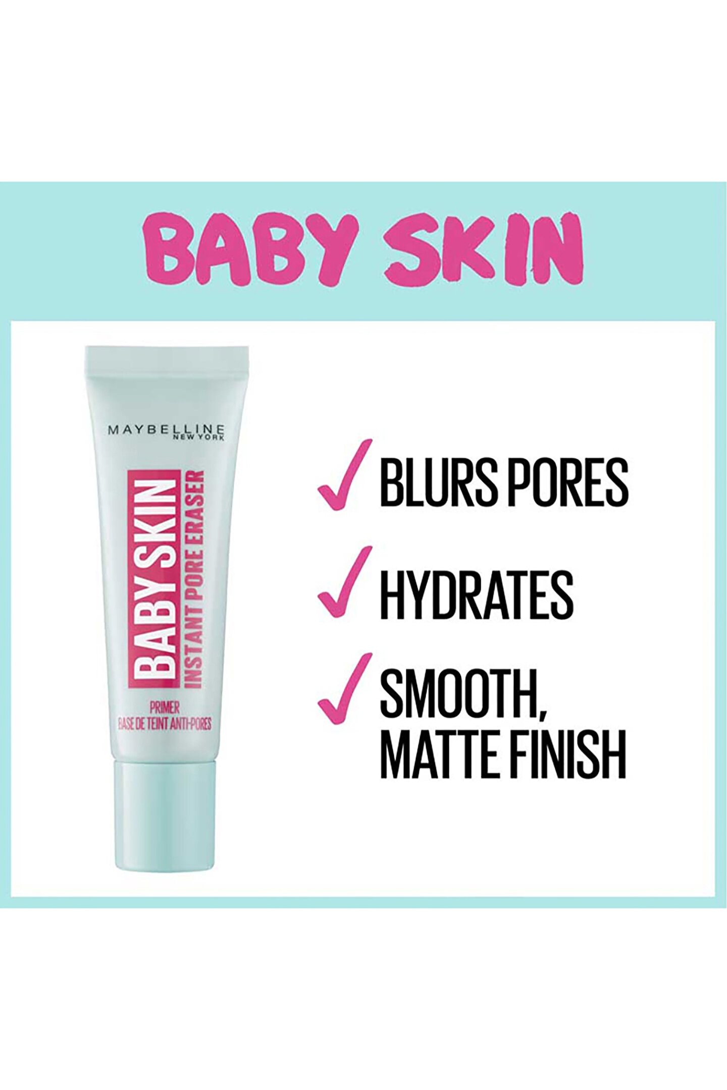 #Özel ÜrünBaby Skin Gözenek Gizleyici Makyaj BazıVişne özü içeren formülü ile pürüzsüz görünümAnında gözenek kapatma etkisiAğırlık hissi bırakmaz22 ml;