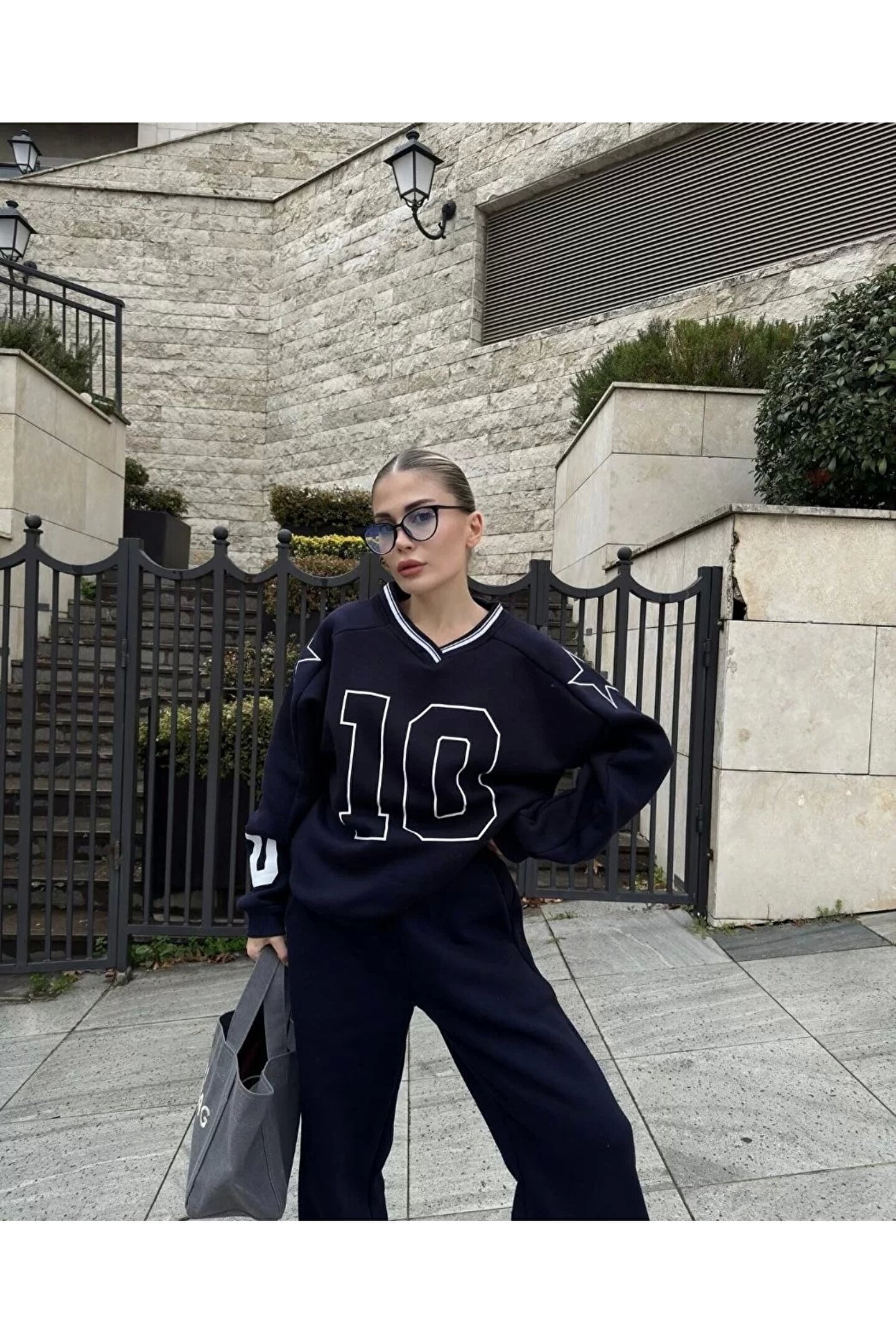 MÇ Plus V Yaka Üç İplik Sweat Takım - Siyah