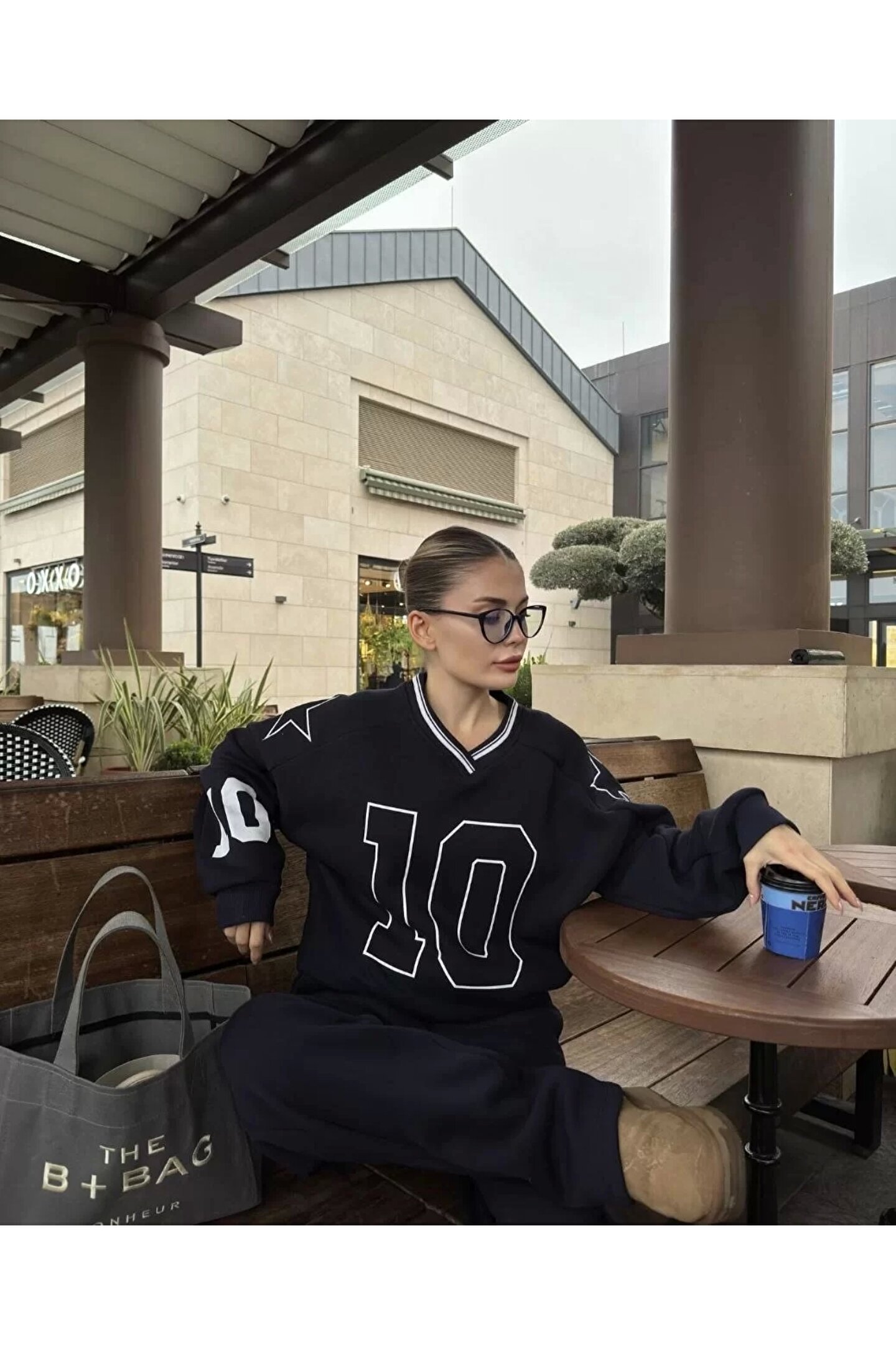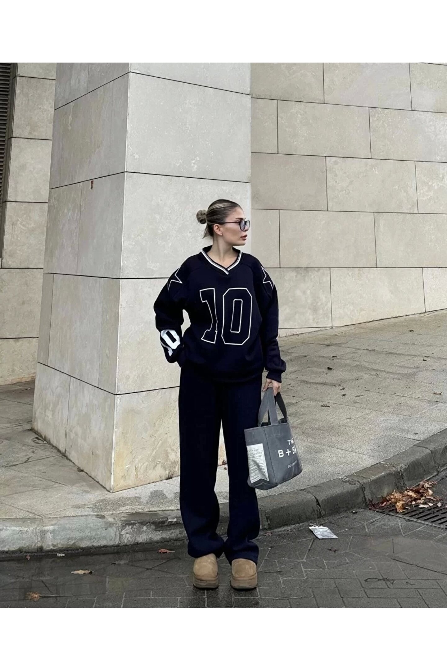 V Yaka Üç İplik Sweat Takım - Siyah
