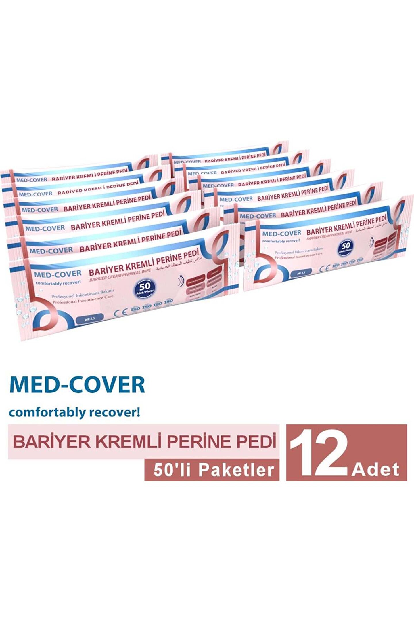MED-COVER Bariyer Kremli Perine Bölgesi Temizleme Pedi/mendili 50'li - 12 Adet