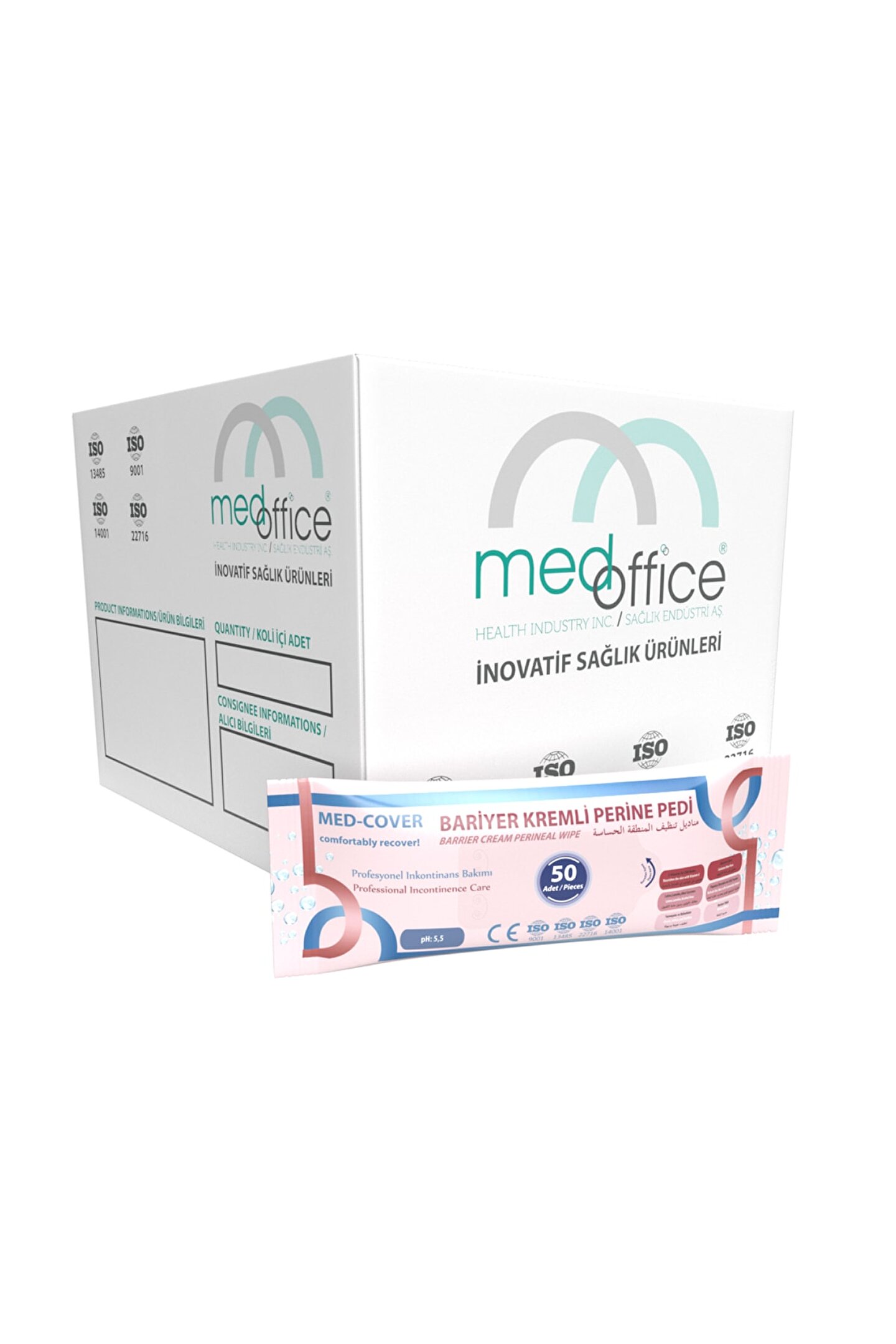 Med-Cover Bariyer Kremli Perine Pedi; Özellikle hasta alt bezi kullanan hastalarda, bezi değiştirildikten sonra tavsiye edilir. Perine bölgesinin sabun ve su gibi son derece bazik ürünler ile temizlenmesine bağlı olarak, bölgedeki asit tabakası (koruyucu bariyer tabakası) deforme olabilir. Asit tabakası deforme olan cilt kurur. Kuru cilt çatlar ve bu çatlaklar bölgede üriner enfeksiyon oluşması için son derece elverişli bir ortam oluşturur. MED-COVER Bariyer Kremli Perine Pedi içeriğindeki %3 Dimetikon ile bozulmuş cildin doğal bariyer tabakası rolünü üstlenir. Bu tabaka, sıvı geçirgenliğini bloke eder. Şeffaf, nefes alabilen bir bariyer tabaka oluşturur. Perine bölgesi için özel olarak hazırlanmış olan ürün, yumuşak dokusu ile bölgeye zarar vermeyecektir. İdrar ve dışkı bölgelerindeki bakımın yanı sıra cilt hasarının önüne geçmeye yardımcı olacaktır. Fosfolipid kuru cildi nemlendirir, cilde kaybettiği esnekliğini geri kazandırır, Papatya Özü ve E Vitamini gibi özel bileşenler ile konforlu bir bakım olanağı sunar.