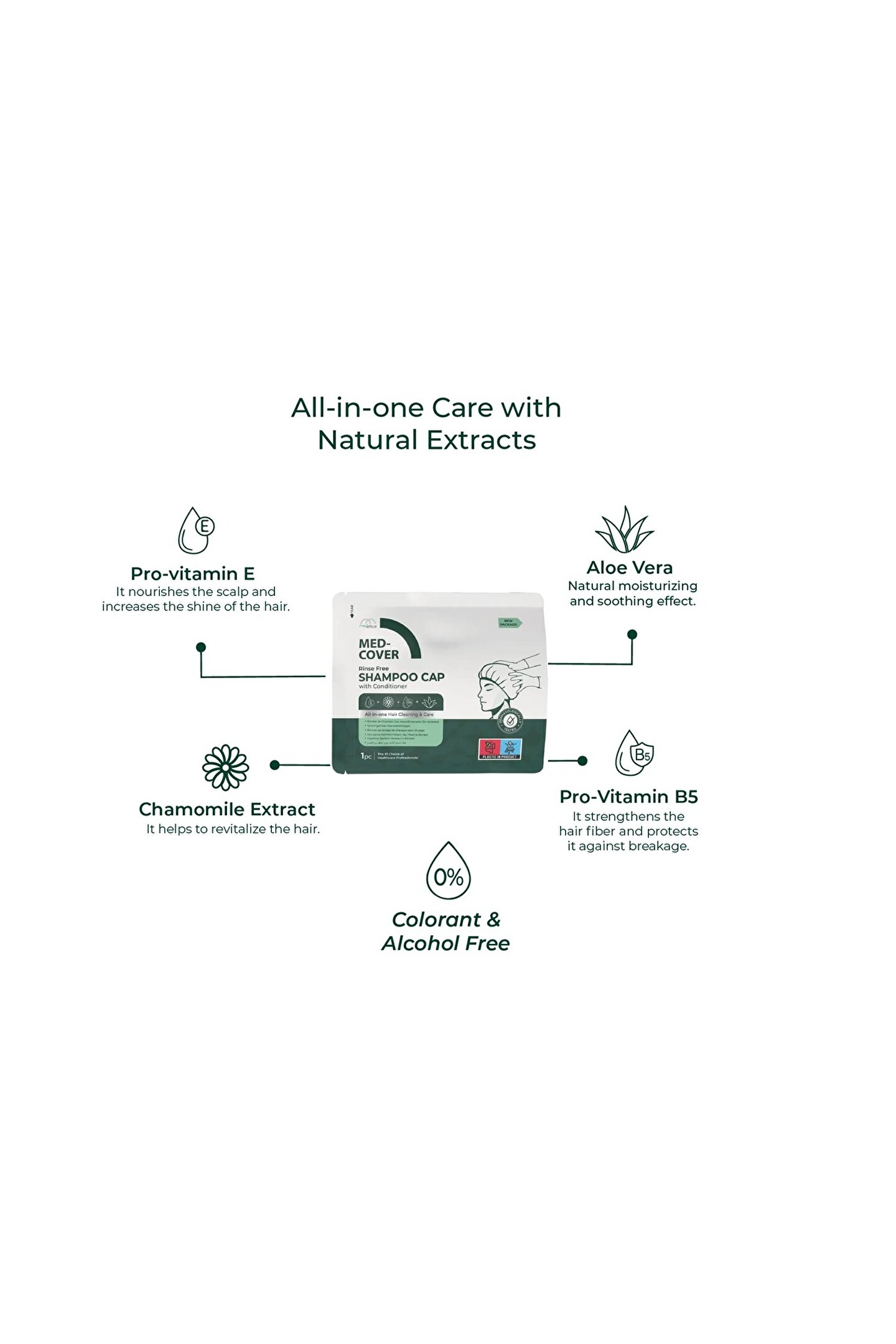 Normal yollar ile saç ve baş bölgesi temizliği yapılamayan durumlarda kullanılır.; ; Bone şeklinde tasarlanmış olan ürün dış yüzeyi su geçirmeyen özel bir kumaştan imal edilmiştir.; ; Lateks içermeyen özel lastiği ile kafaya takılabilir ve saçı komple kavrayabilir.; ; Lateks içermediği için ciltte tahrişe sebep olmamaktadır.; ; İç katmanda bulunan özel kompozisyonu sayesinde yüksek emiciliğe sahip olan nonwoven kumaşa emdirilmiş zenginleştirilmiş solüsyon ile günlük saç temizliği ve bakımı yapılabilmektedir.; ; Sonrasında durulama ve kurulama gerektirmemektedir.; ; Sıvı geçirmeyen dış katmanı sayesinde sıvının dış yüzey ile temasını önler.; ; Tek yapılması gereken paketi açmak, boneyi tüm saçı kaplayacak şekilde kafaya takmak ve 3 dakika boyunca freksiyon şeklinde masaj yapmaktır.; ; Saç Yıkama Bonesi, Saçı kirden yağdan arındırır, hoş kokmasını sağlar, saç derisini yumuşatır ve besler, saçlara bakım yapar.; İçeriğindeki Allantoin ile saç derisindeki ölü hücreleri ciltten uzaklaştırır.; Normal yollar ile yapılan saç temizleme işleminde saçtaki ve saç derisindeki kir ve yağ gibi rahatsız edici etkenler köpük vasıtası ile uzaklaştırılır.; Saç Yıkama Bonesi ürününde yüksek emiciliğe sahip nonwoven kumaş bu görevi üstlenir.