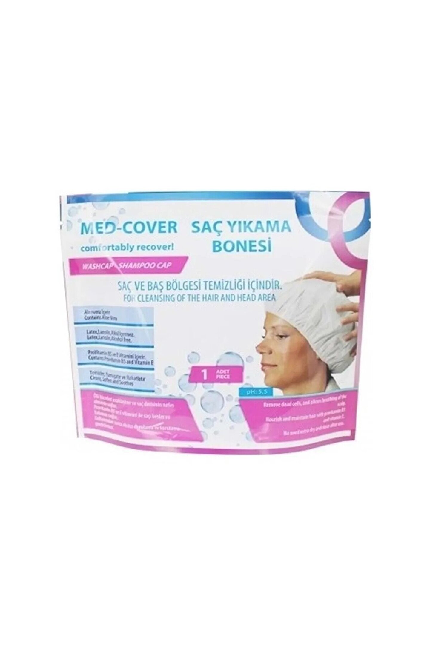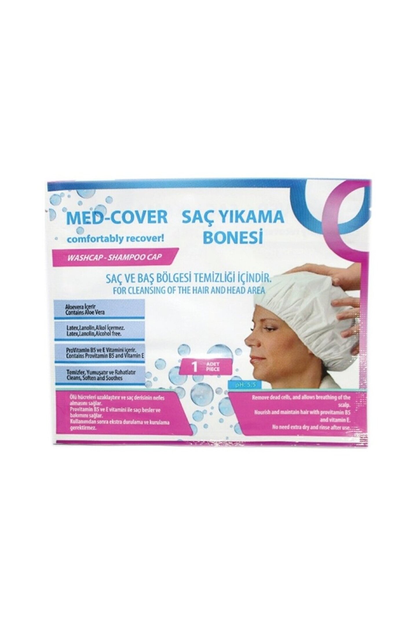 Normal yollar ile saç ve baş bölgesi temizliği yapılamayan durumlarda kullanılır.; ; Bone şeklinde tasarlanmış olan ürün dış yüzeyi su geçirmeyen özel bir kumaştan imal edilmiştir.; ; Lateks içermeyen özel lastiği ile kafaya takılabilir ve saçı komple kavrayabilir.; ; Lateks içermediği için ciltte tahrişe sebep olmamaktadır.; ; İç katmanda bulunan özel kompozisyonu sayesinde yüksek emiciliğe sahip olan nonwoven kumaşa emdirilmiş zenginleştirilmiş solüsyon ile günlük saç temizliği ve bakımı yapılabilmektedir.; ; Sonrasında durulama ve kurulama gerektirmemektedir.; ; Sıvı geçirmeyen dış katmanı sayesinde sıvının dış yüzey ile temasını önler.; ; Tek yapılması gereken paketi açmak, boneyi tüm saçı kaplayacak şekilde kafaya takmak ve 3 dakika boyunca freksiyon şeklinde masaj yapmaktır.; ; Saç Yıkama Bonesi, Saçı kirden yağdan arındırır, hoş kokmasını sağlar, saç derisini yumuşatır ve besler, saçlara bakım yapar.; İçeriğindeki Allantoin ile saç derisindeki ölü hücreleri ciltten uzaklaştırır.; Normal yollar ile yapılan saç temizleme işleminde saçtaki ve saç derisindeki kir ve yağ gibi rahatsız edici etkenler köpük vasıtası ile uzaklaştırılır.; Saç Yıkama Bonesi ürününde yüksek emiciliğe sahip nonwoven kumaş bu görevi üstlenir.