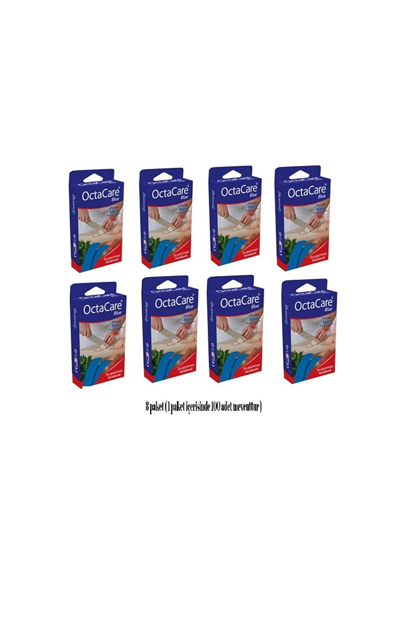 8 Paket Mavi Yara Bandı Su Geçirmez Dedektör Duyarlı