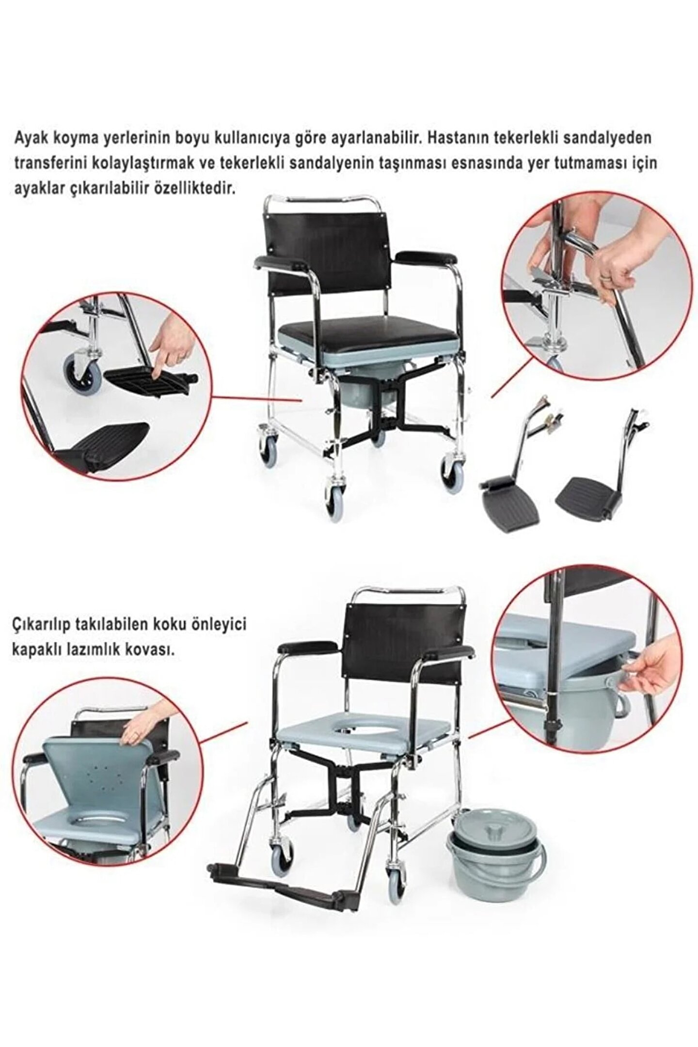 Banyo Tuvalet Sandalyesi Genel Özellikleri Katlanabilir şase Çıkartılabilen ayaklıklar Hareketli kolçaklar Frenli sistem tekerlekler Antibakteriyal ve su geçirmez oturma minderi Refakatçi kolları Klozet (Lazımlık) *Kargo Paket gizliliği vardır; Kargo Paketinizde kesinlikle iletişim bilginizden farklı bir açıklama bulunmaz; *iade ve değişim için Lütfen Önce bizimle iletişime geçiniz; *iade ve Değişim için, Kesinlikle Ambalajı Açılmamış ve Bozulmamış ürünler kabul edilmektedir; *Satın Almış olduğunuz ürünler paketli ve sağlam bir şekilde kargo firmasına teslim edilmektedir; *Kargo teslimatı sırasında ürünün ambalajında bir hasar görürseniz veya hasar oluşmuş ise lütfen kargo şirketine tutanak tutturup tarafımızla iletişime geçiniz; Bozulmuş ,hasarlı ve kırık teslim edilen ürünlerde tutanak tutturmanız zorunludur; Tutanak tutturulmayan ve kontrol edilmeden teslim alınan ürünlerde sorumluluk alıcıya aittir; 001 ;;