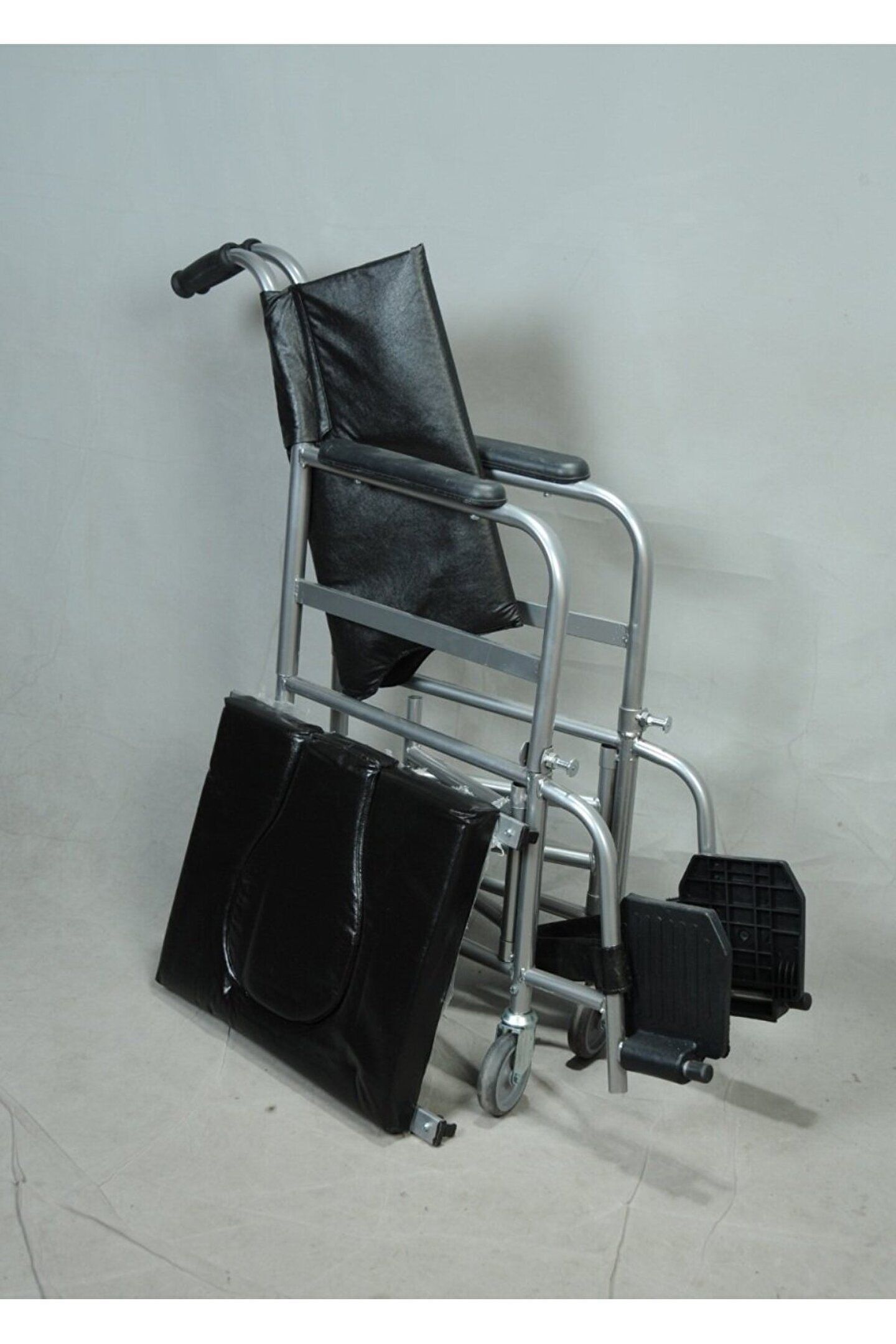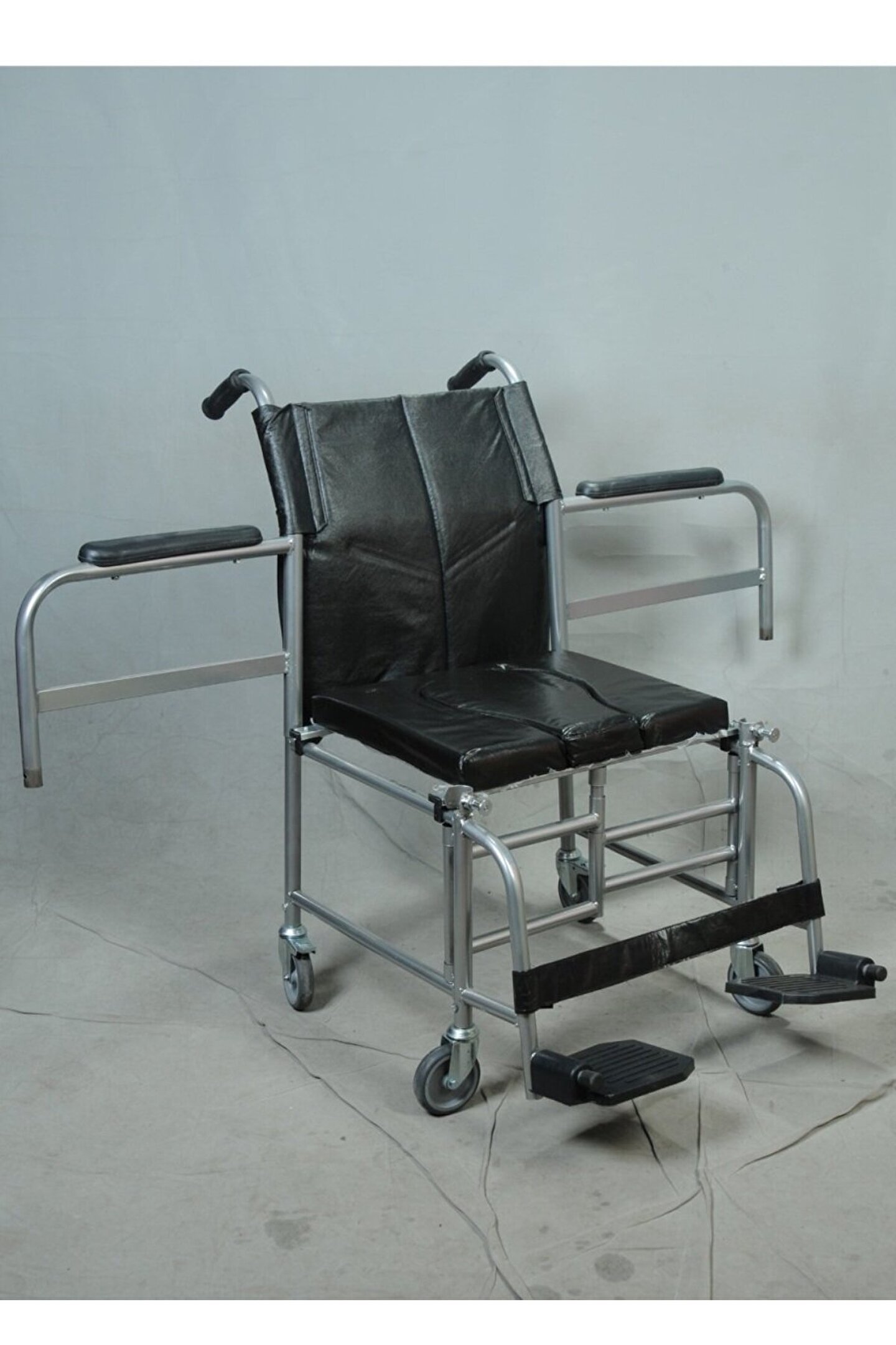 klozete yanaşan tekerlekli sandalye Teknik Özellikler: Ev Tipi Küçük Tekerli Tuvaletlik klozete uyumlu sandalye Ev Tipi Küçük Tekerlekli tuvaletlik ve banyo arabası.. Kolaylıkla katlanıp, Taşınabilir Yan kollar çıkar Tuvalet Tuvalet aparatlı Oturma Yeri Genişliği: 44 cm Oturma Yeri Derinliği: 43 cm Oturma Yeri Yüksekliği: 50 cm Oturma Yeri Açısı: - Sırtlık Yüksekliği: 38 cm Kolçak Yüksekliği: 23 cm Toplam Genişlik: 53 cm Toplam Yükseklik: 91 cm Toplam Uzunluk: 86 cm Katlanır Genişlik: 13 cm Arka Tekerlek: 4’’(100 mm) PU Dolgu(Frenli) Ön Tekerlek: 4’’(100 mm) PU Dolgu