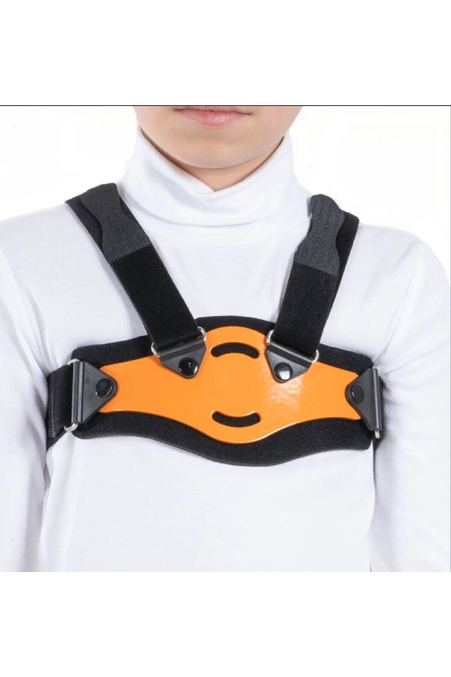 Pectus Carinatum Ortezi (Güvercin Göğsü ) Pediyatrik Hastalar İçin Öndeki destek sternumu, arkadaki destek omurgayı destekler. Göğüs kafesini yanlardan destekleyen yumuşak bantlardan oluşmuştur. Yanlardan ayarlanan cırtbantlar sayesinde vücuda göre ayarlanır. Ayarlanabilir omuz askılarının oluşu ortezi vücuda stabilizasyon sağlar. Sternumu destekleyen ped desteği şekil bozukluğunun olduğu yere göre ayarlanabilir.Tek beden ayarlanabilir.