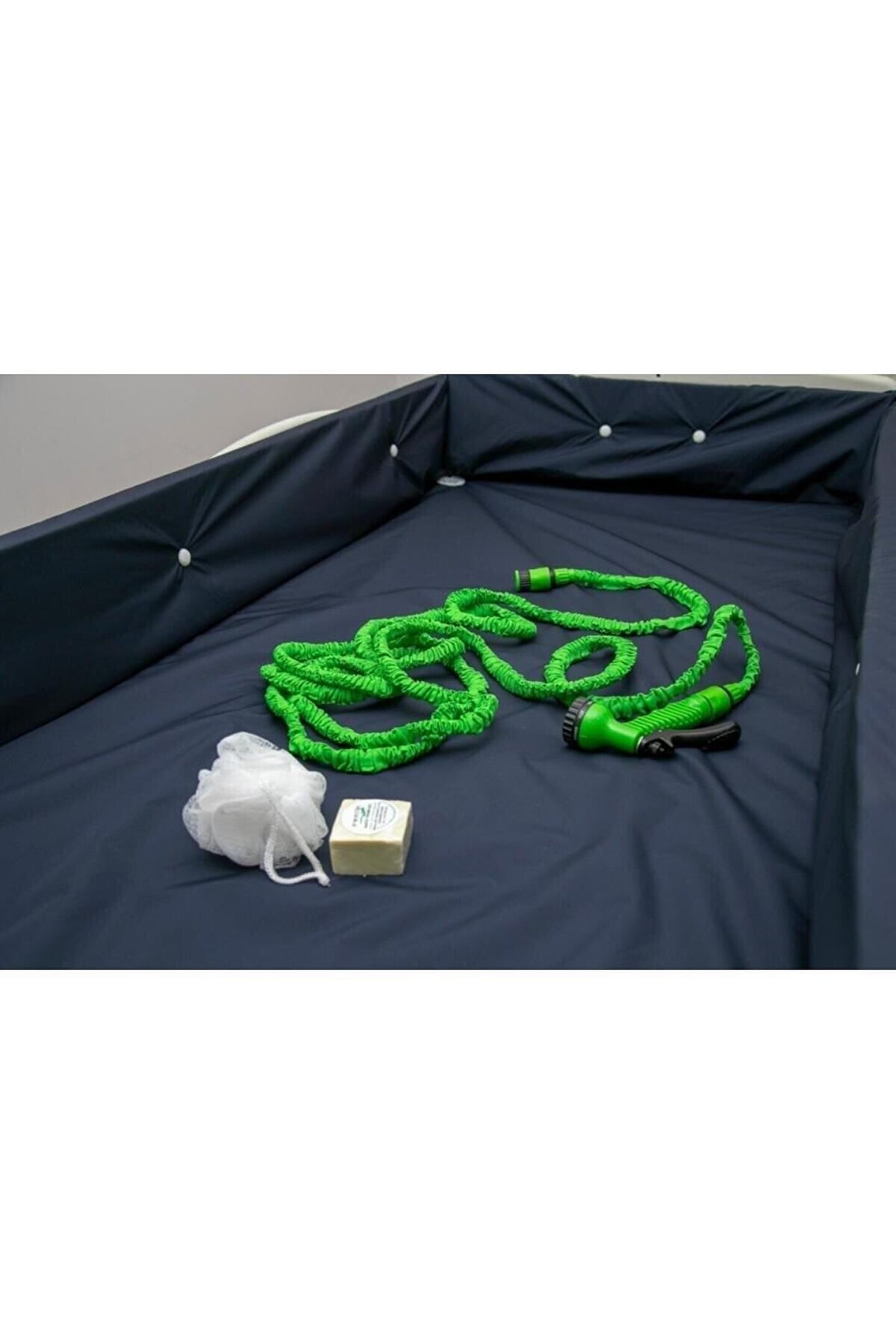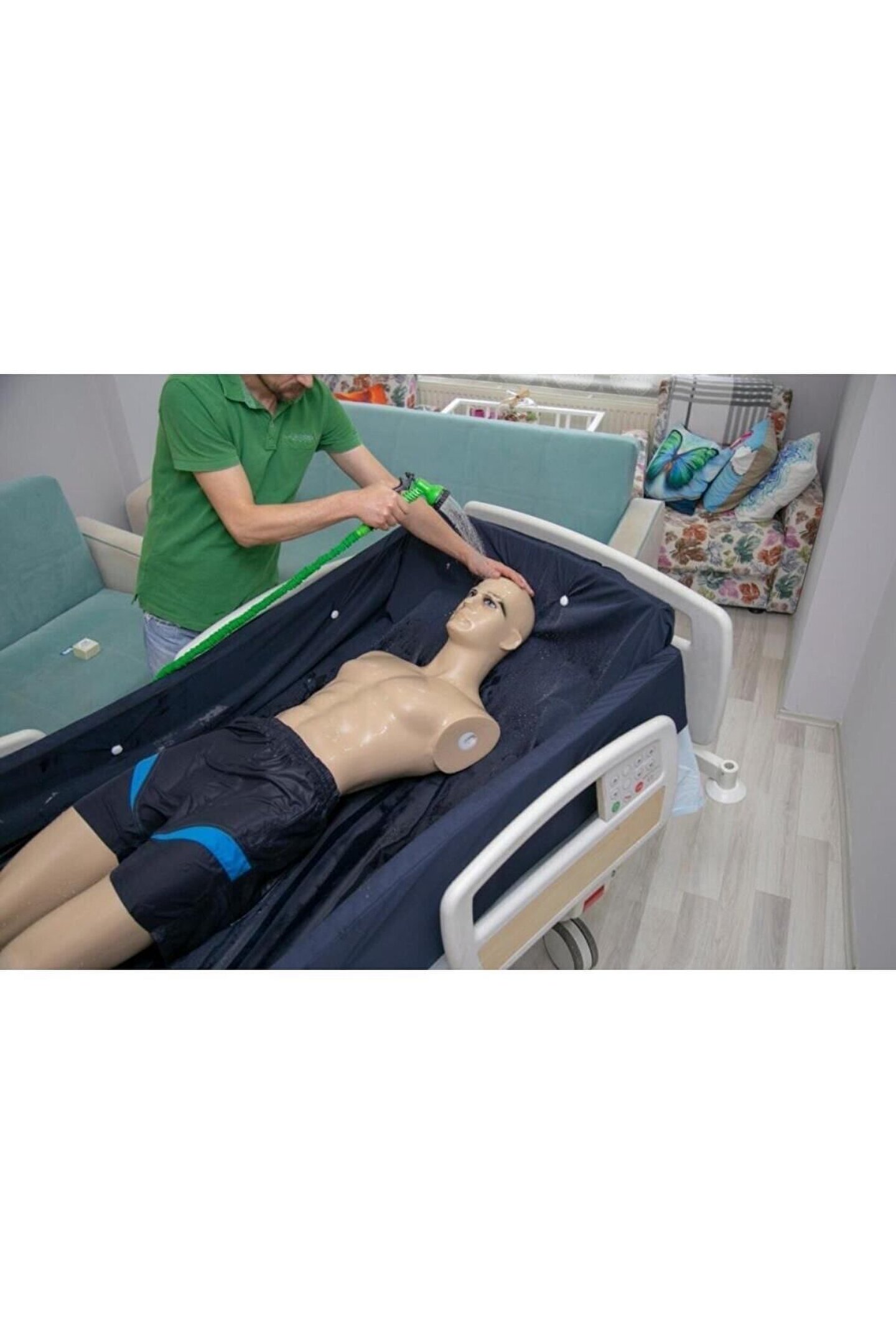 Medikaltec Açıklama Pratik Hasta Yıkama Seti; Yatağa bağımlı hastaların kendi yatağında yıkanmasını sağlayan bir üründür. Ürünümüz içerisinde 1 adet zeytinyağlı sabun, 15 metre uzayan hortum ve 1 adet lif bulunmaktadır. Ürün 190*90 cm ebatlarında olup yüksekliği 20cm’dir. Ürünümüzde atık su gideri mevcuttur. Ürün sayesinde hastanın banyo esnasında oluşabilecek düşme,çarpma vb. olaylara maruz kalması engellenir.