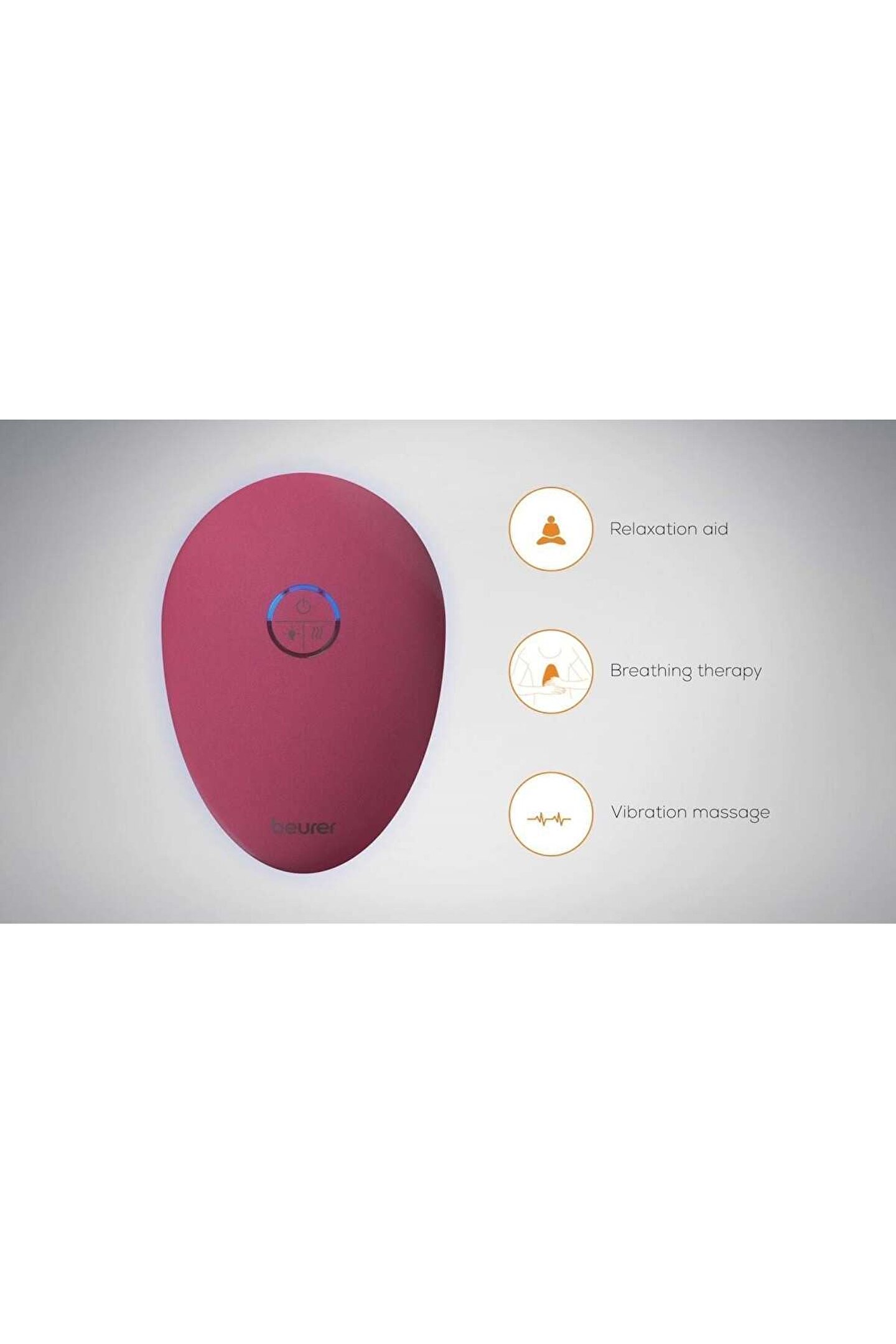 Beurer St-100 Stress Releazer BEURER ST 100 STRESS RELEAZER DİNLENDİRİCİ SOLUNUM EGZERSİZ CİHAZI Stresten kurtulmak için dinlendirici ve solunum egzersiz cihazı Düşük frekanslı titreşim veren titreşim motoru Ayarlanabilir 3 farklı nefes alıp verme döngüsü Uygulama aracılığı ile 3 müzik kompozisyonu tercihi(ORMAN,YAĞMUR ORMANI,DENİZ) Stresi azaltan titreşimli masaj Ayarlanabilir 3 nefen alıp verme döngüsü(10/12/14 saniye) Nefes alıp vermeyi göstermek için açılıp kapatılabilen ışıklı halka istendiğinde kullanılabilen ısıtma fonksiyonu Diyafram bölgesine yerleşim Şarj edilebilir pille çalışır Şarj süresi 4 saat Çalışma süresi ısıtma fonksiyonu olmadan 11 saat ısıtma fonksiyonu ile 3 saattir. ''beurer CalmDown'' Uygulamasını ücretsiz indirebilirsiniz. İOS 9.0 ve üzeri ,ANDROİD 5.0 ve üzeri ,Bluetooth 4.0 ve üzeri ile uyumludur. 5 Watt Merkezi sinir yollarında etkili rahatlama Stress releaZer cihazının diyafram bölgesine yerleştirilmesiyle bu bölgedeki ana sinir yolları sakinleştirilir ve solunum tekrar düzenli hale getirilir. Stress releaZer kullanıcının nefes alıp vermesini destekleyen ımpulslar gönderir. Bluetooth üzerinden cihazı akıllı telefonunuza bağlayabilir ve ''beurer CalmDawn'' uygulaması ile kontrol edebilirsiniz.