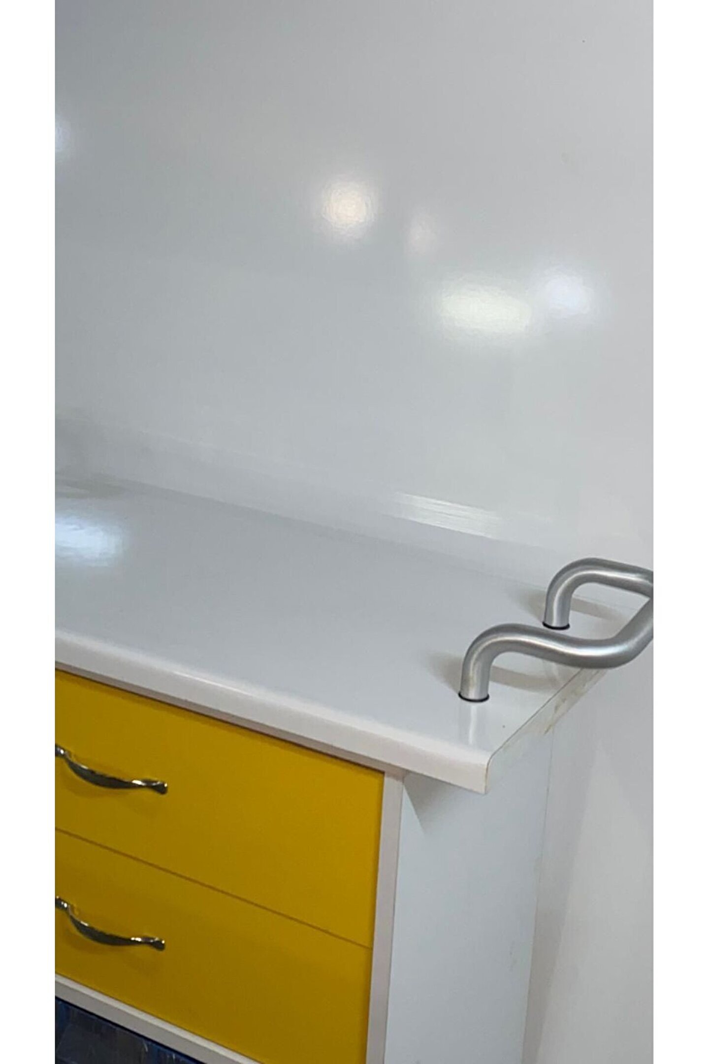 • Renk: Beyaz ve sarı renk kombinasyonuna sahip modern ve şık tasarım.
