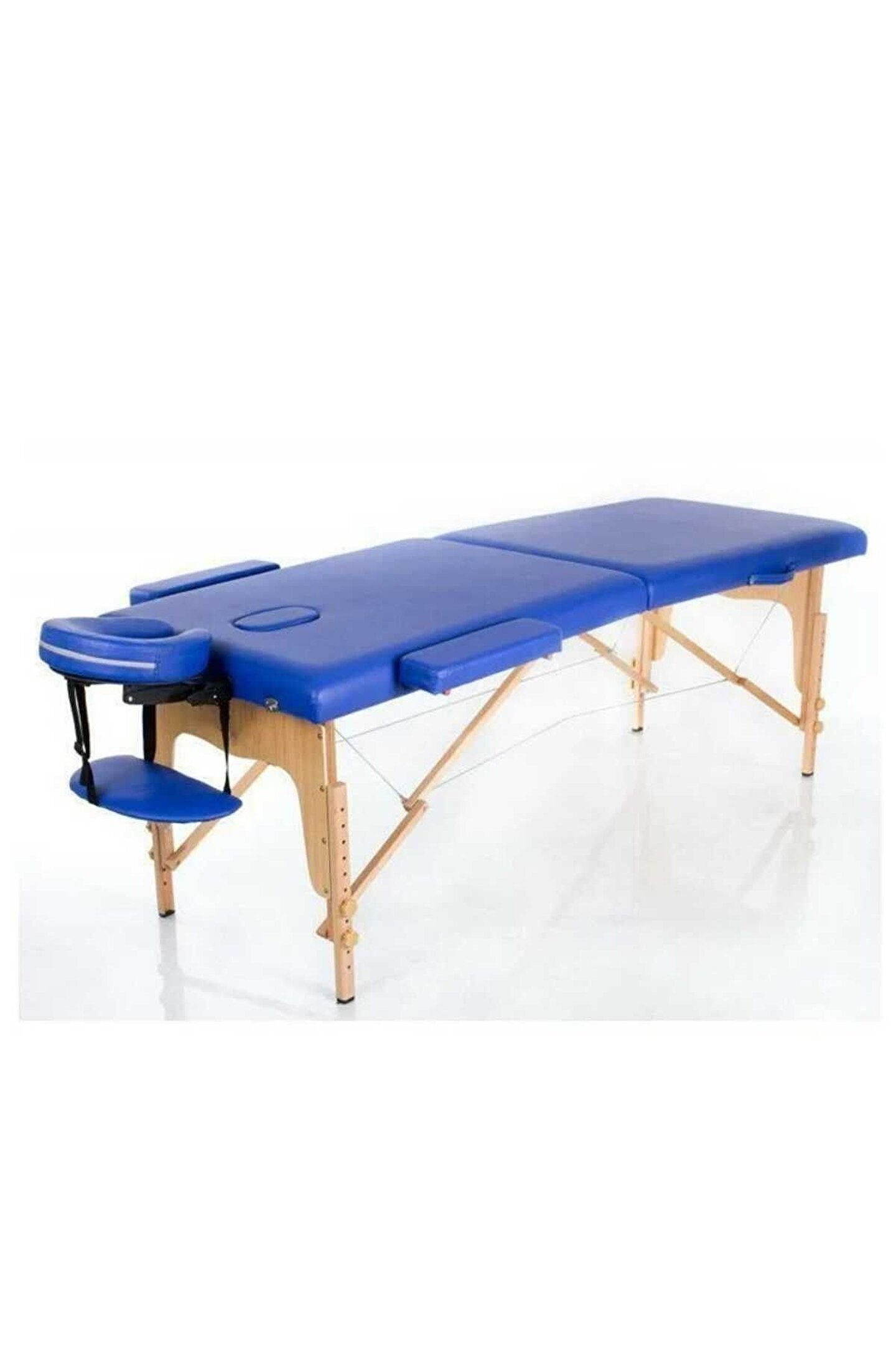 Katlanabilir 3 Parçalı Ahşap Masaj Masası, çanta Tipi Masaj Ve Tedavi Yatağı Lacivert-mavi