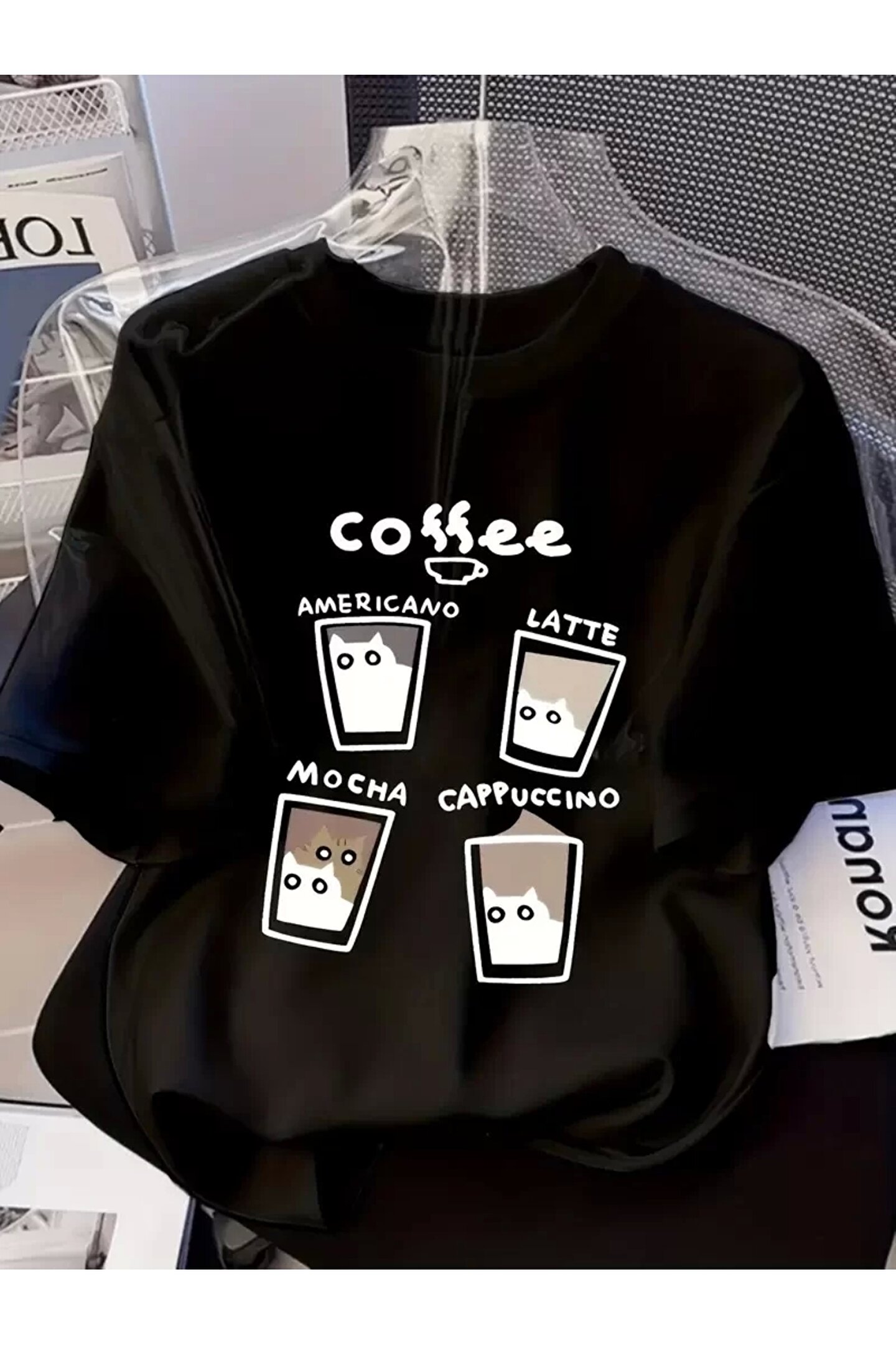 Megstill 201 Penye Compack Baskılı Oversize Bisiklet Yaka Kısa Kol Yazlık T-shirt - Siyah